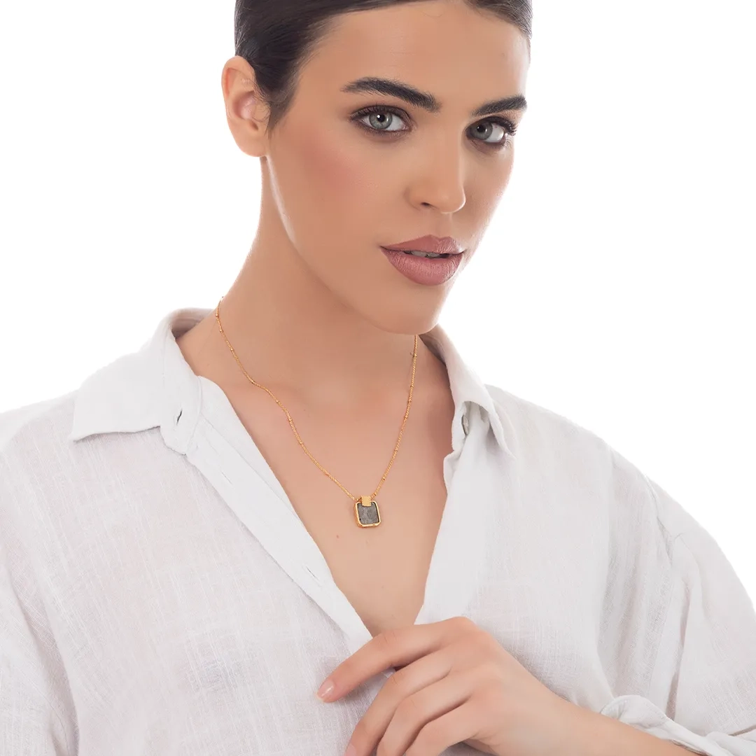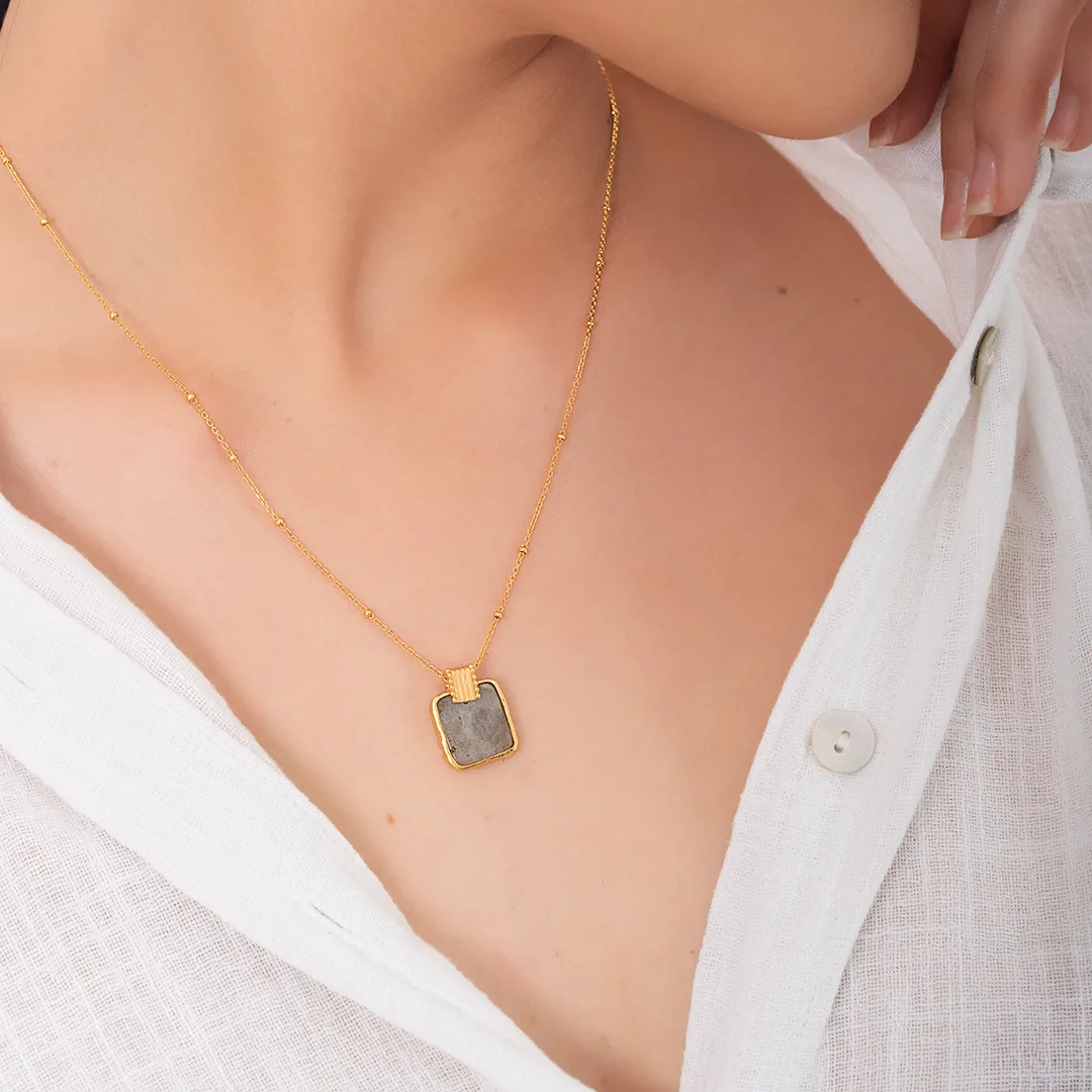 Oxzen ασημένιο κολιέ επιχρυσωμένο χειροποίητο με ορυκτή Flash stone