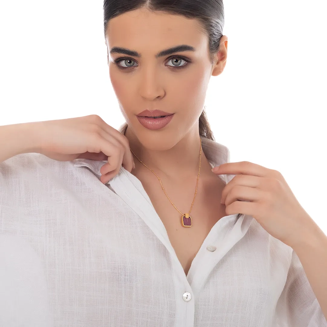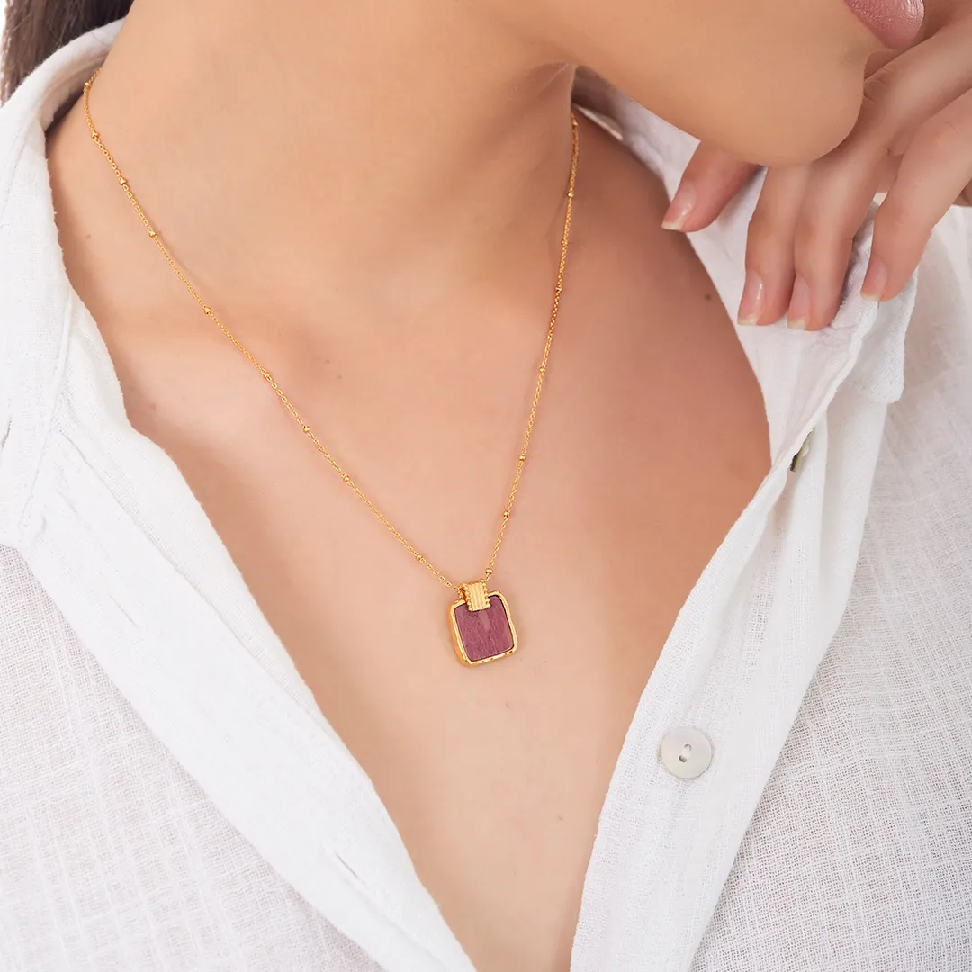 Oxzen ασημένιο κολιέ επιχρυσωμένο χειροποίητο με ορυκτή πέτρα Ίασπις