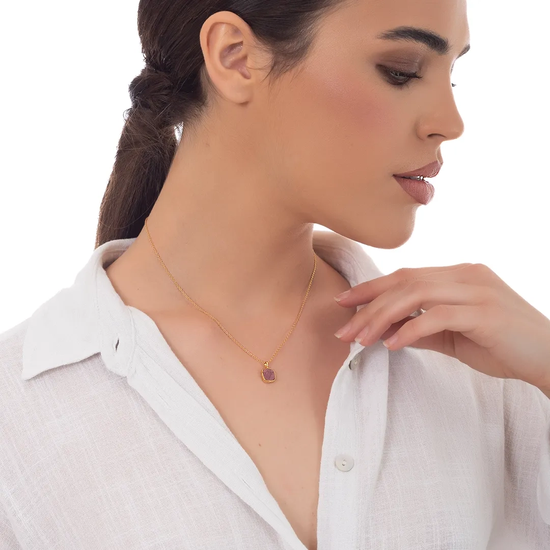Oxzen ασημένιο κολιέ επιχρυσωμένο χειροποίητο με ορυκτή πέτρα Ίασπις
