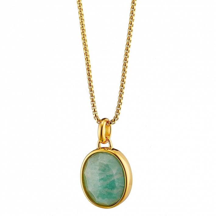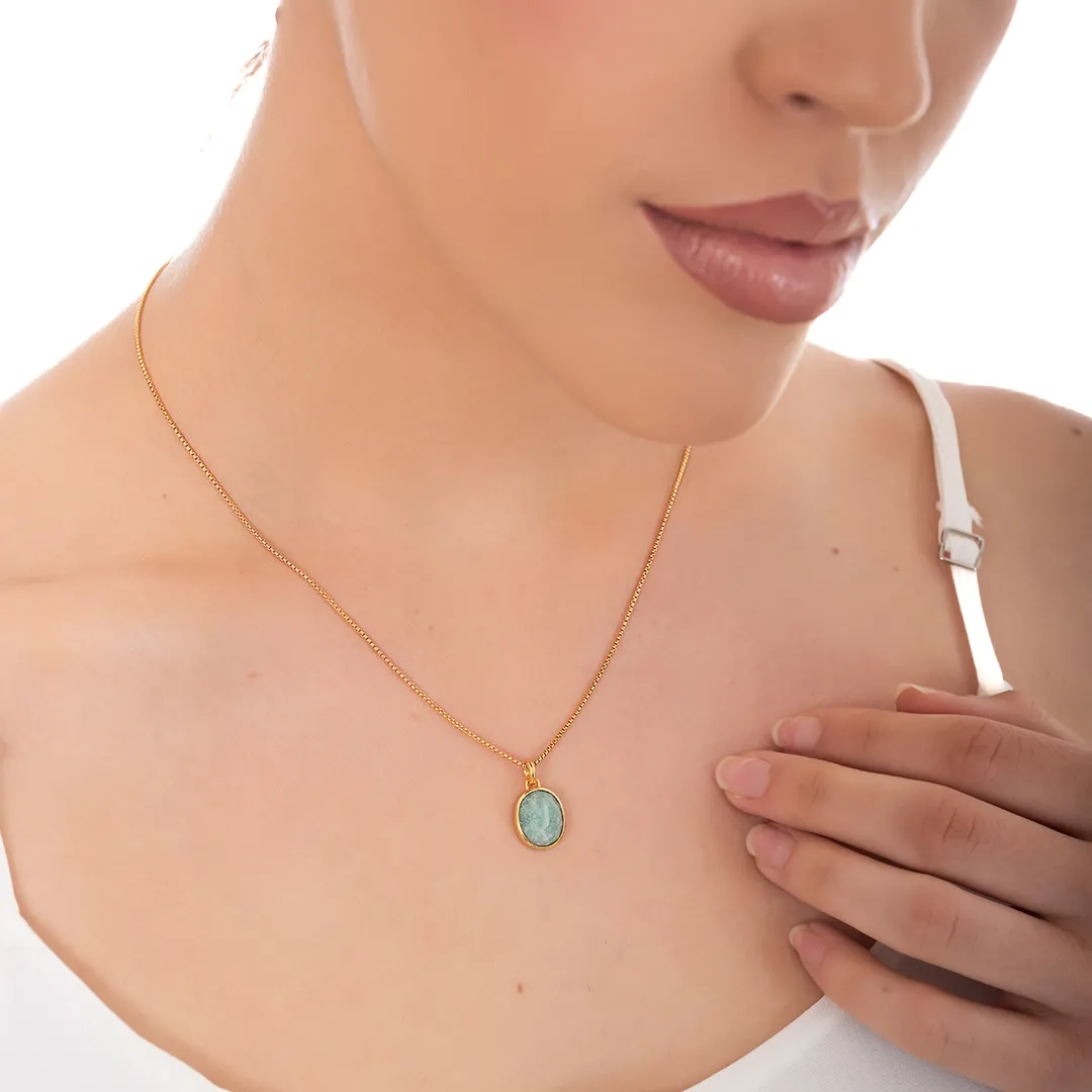 Oxzen ασημένιο κολιέ επιχρυσωμένο χειροποίητο με ορυκτή πέτρα μαλαχίτη