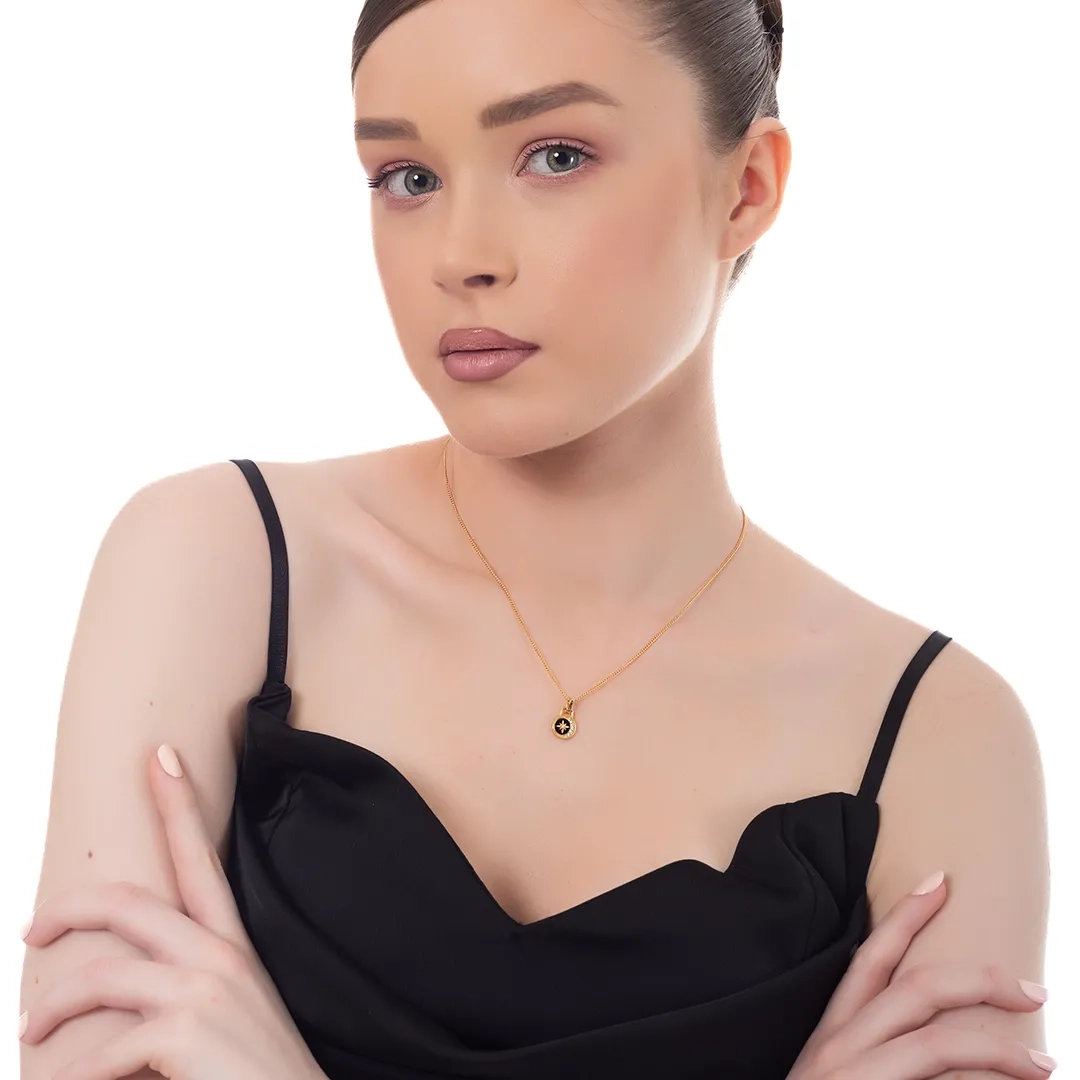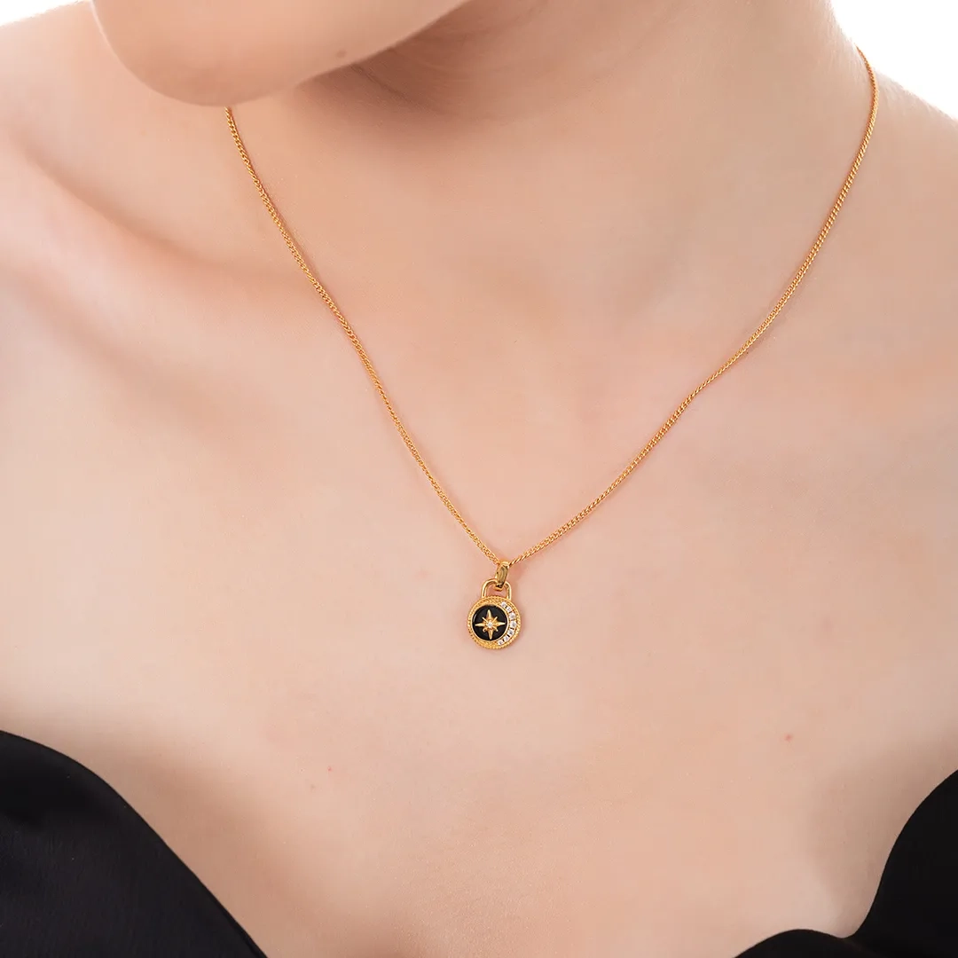 Oxzen ασημένιο κολιέ επιχρυσωμένο χειροποίητο με πέτρα αχάτη και πυξίδα