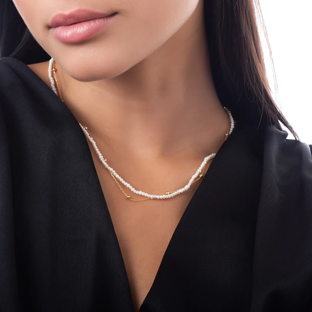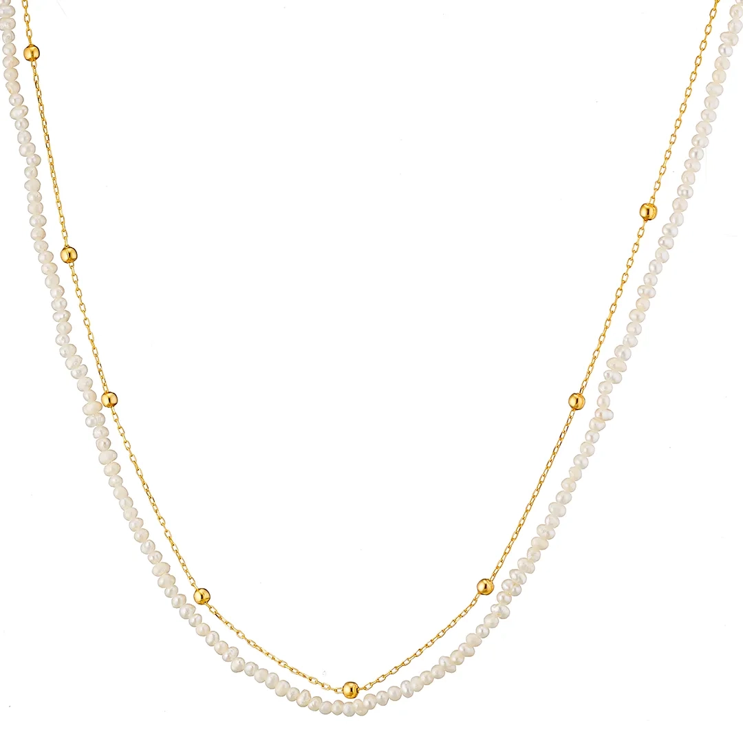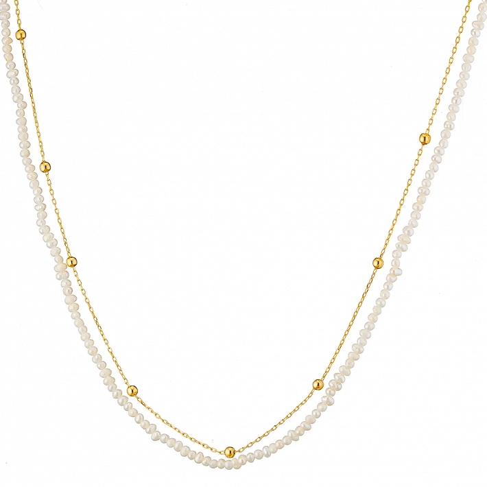 Oxzen ασημένιο κολιέ επιχρυσωμένο διπλό με πέρλες