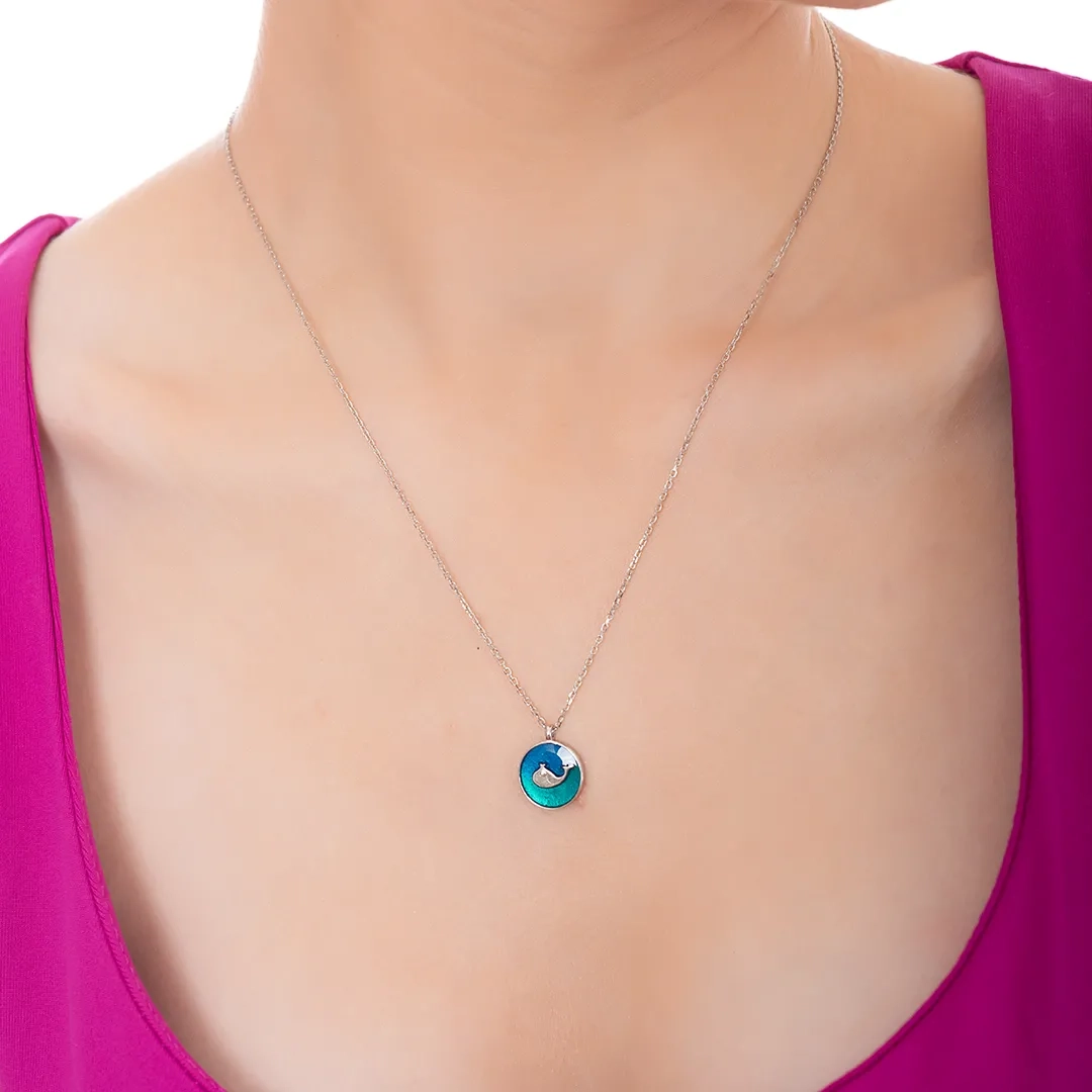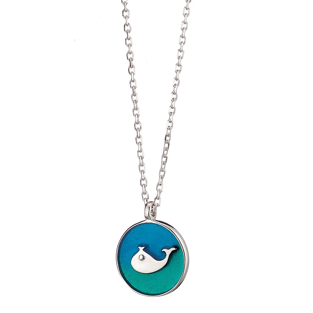 Oxzen ασημένιο κολιέ φάλαινα με μπλε σμάλτο