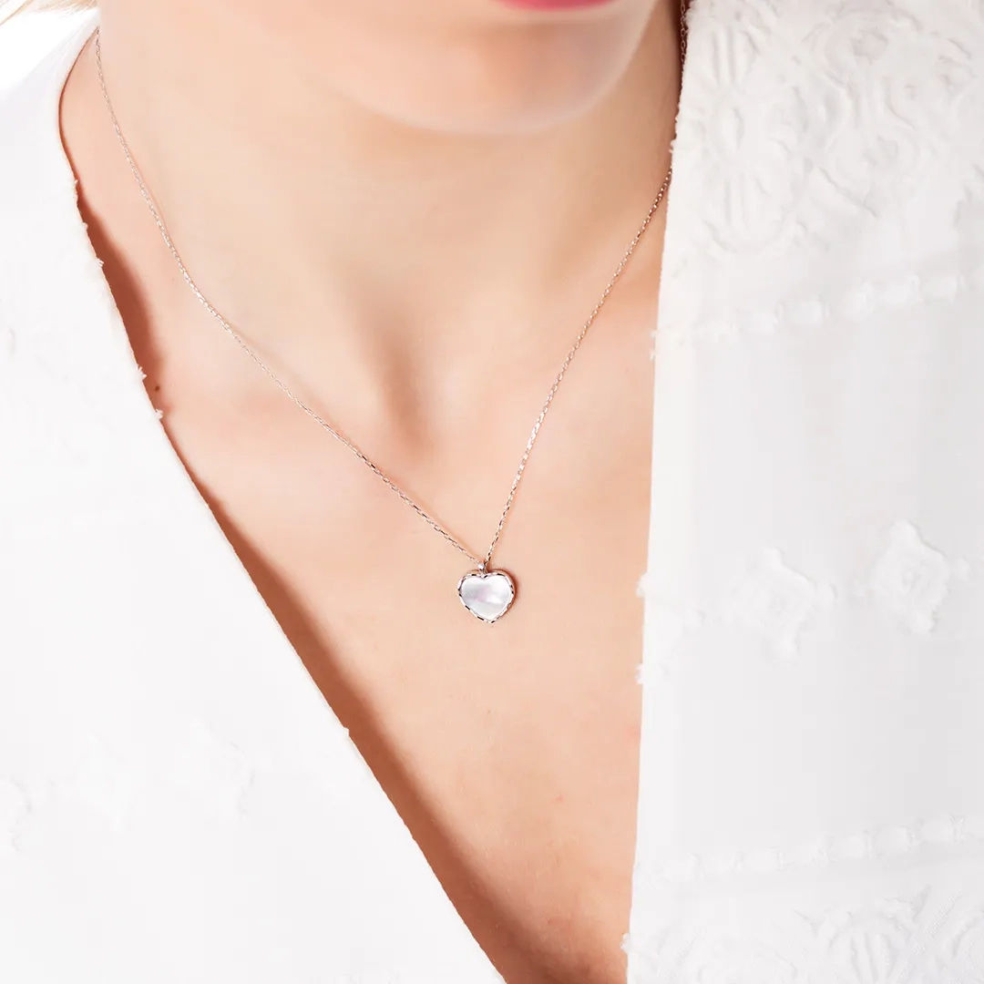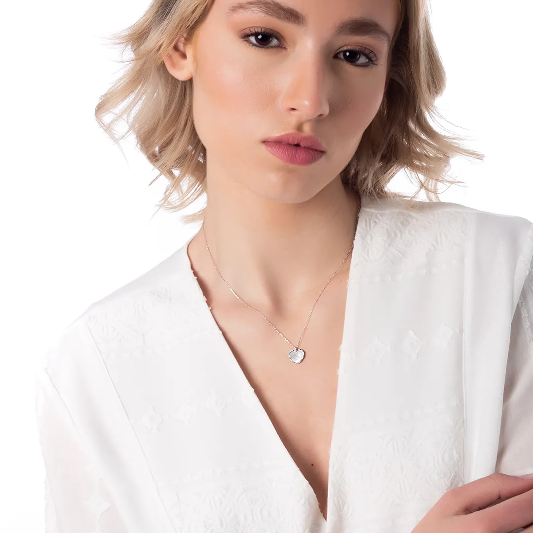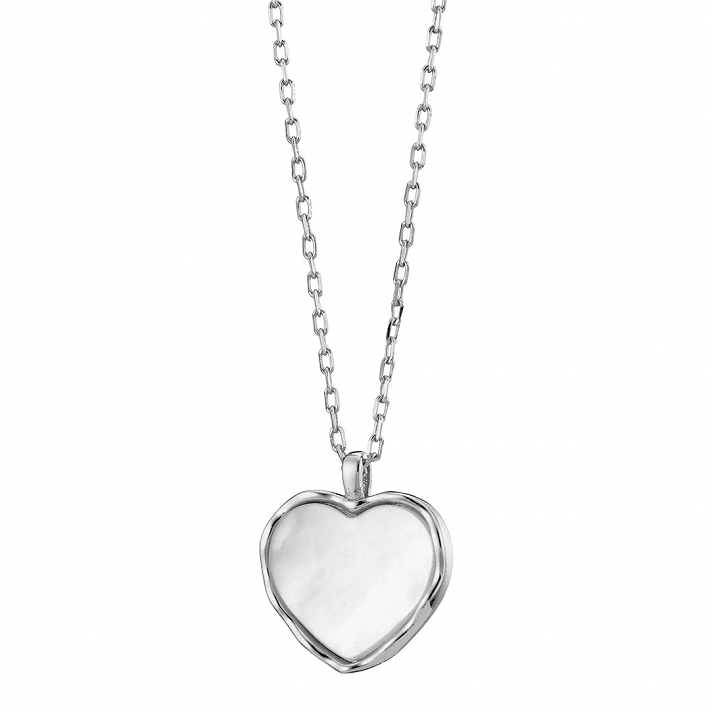 Oxzen ασημένιο κολιέ καρδιά με φίλντισι