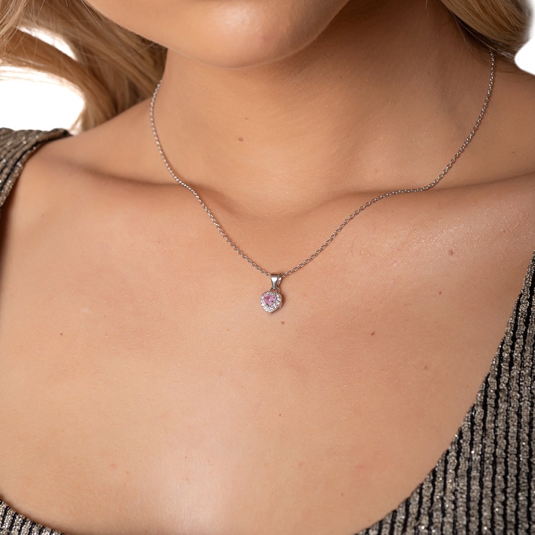 Oxzen ασημένιο κολιέ καρδιά με ζιργκόν
