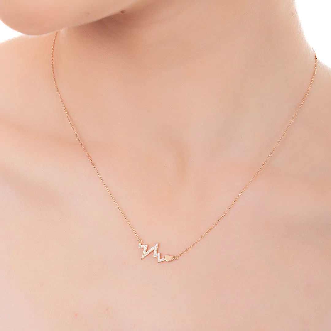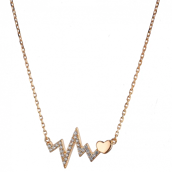 Oxzen ασημένιο κολιέ καρδιογράφημα
