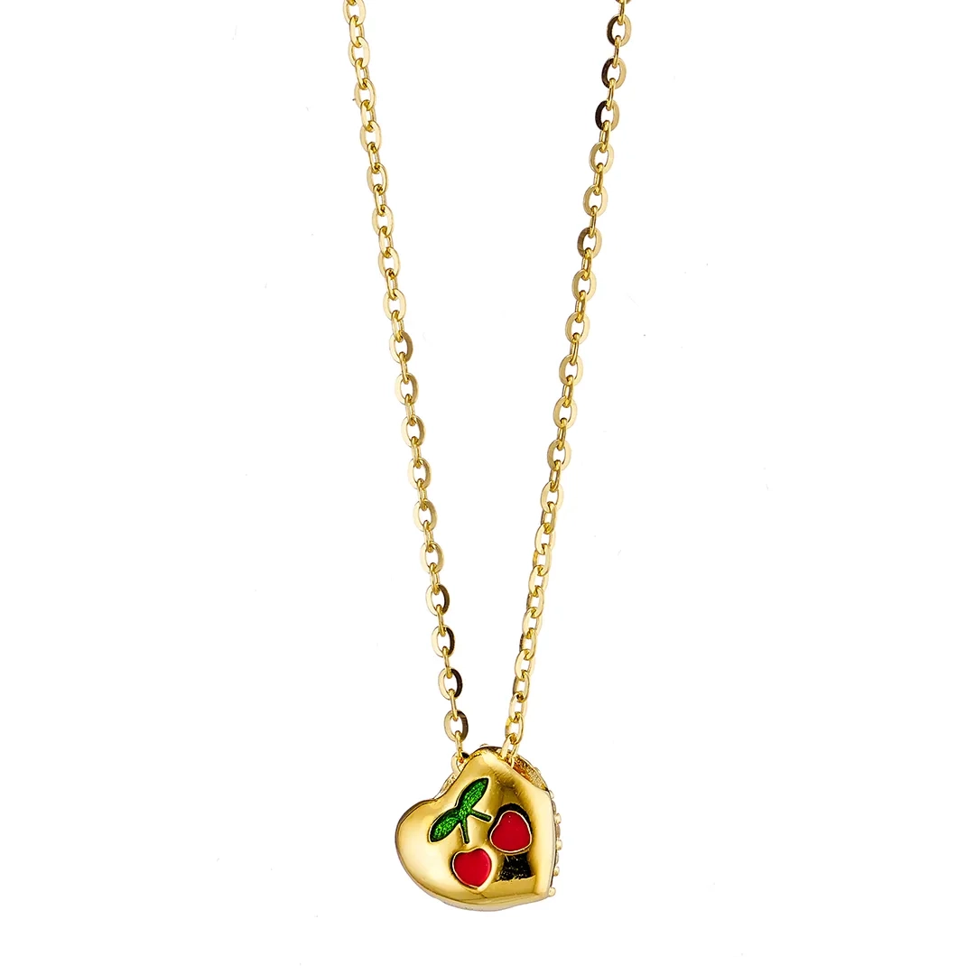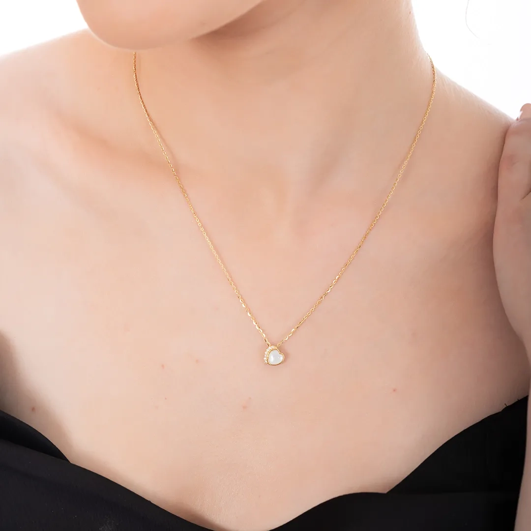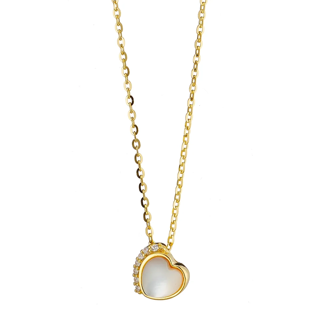 Oxzen ασημένιο κολιέ, καρδούλα μικρή με φίλντισι διπλής όψης