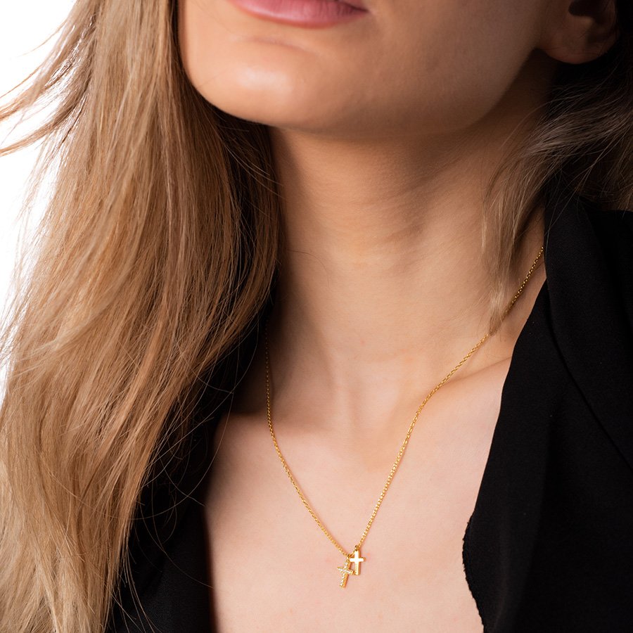 Oxzen ασημένιο κολιέ με διπλό σταυρό