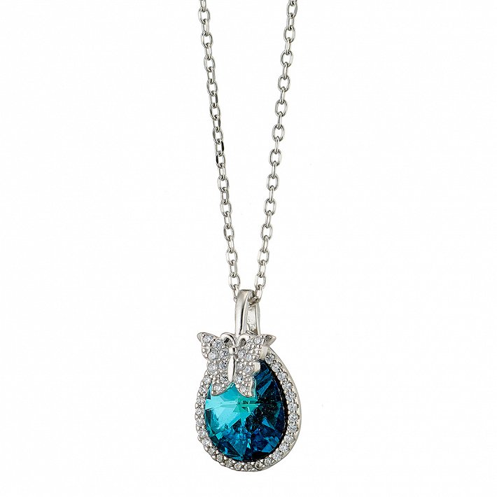 Oxzen ασημένιο κολιέ με γαλάζιο ζιργκόν