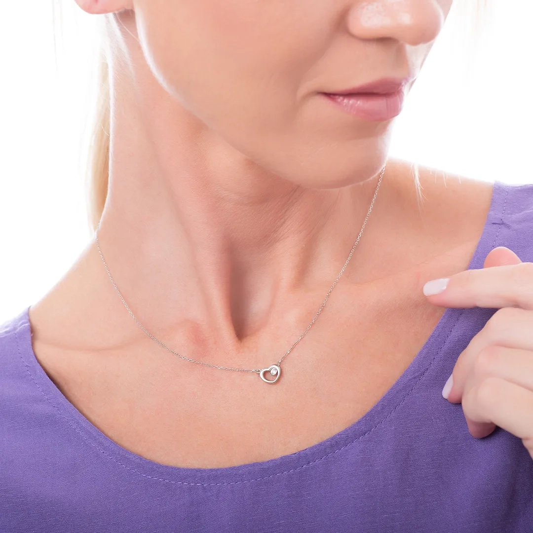 Oxzen ασημένιο κολιέ με καρδιά και ένα λευκό ζιργκόν