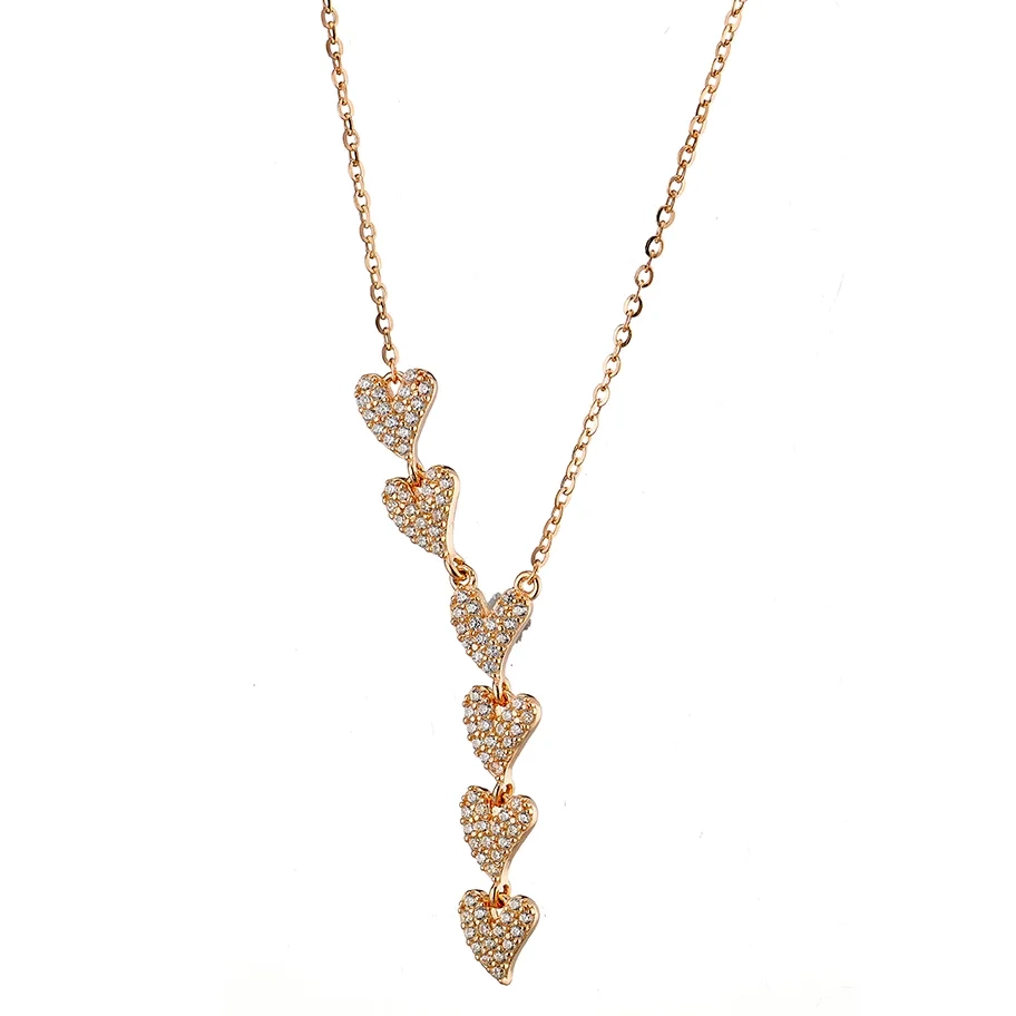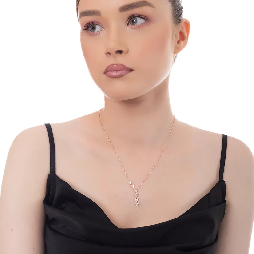 Oxzen ασημένιο κολιέ με καρδιές στη σειρά και πέτρες ζιργκόν