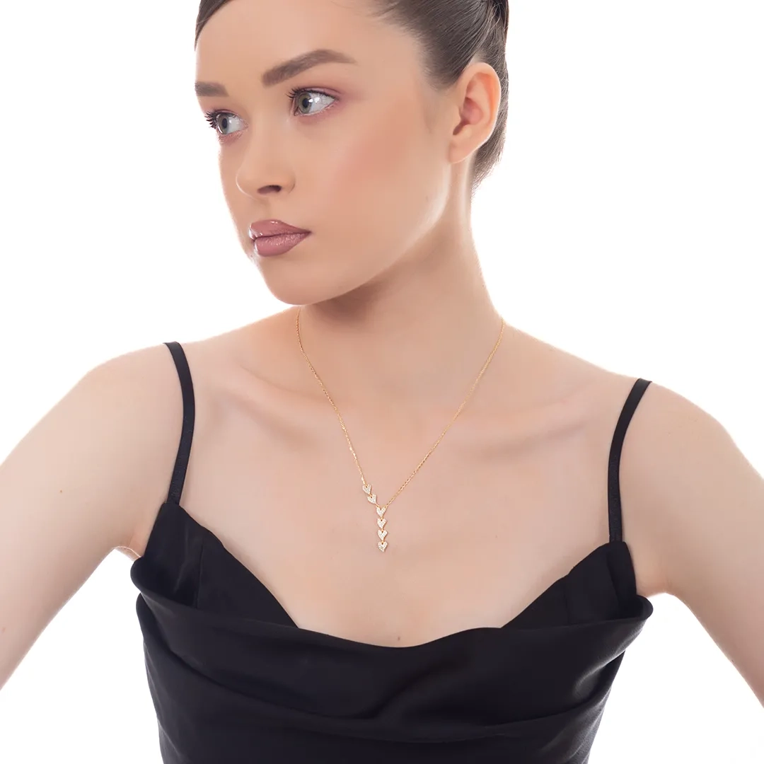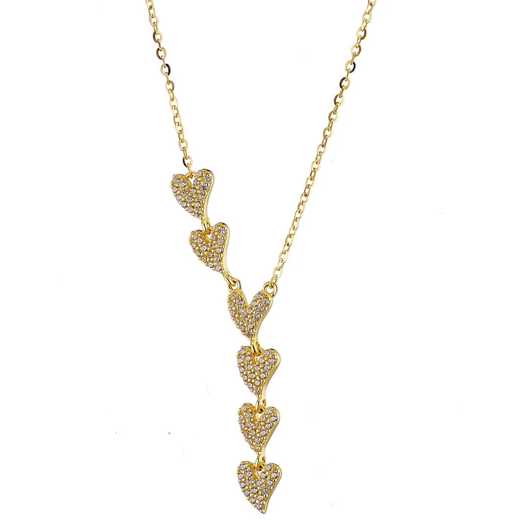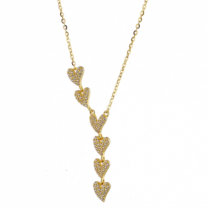 Oxzen ασημένιο κολιέ με καρδιές στη σειρά και πέτρες ζιργκόν