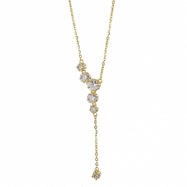 Oxzen ασημένιο κολιέ με λευκά ζιργκόν