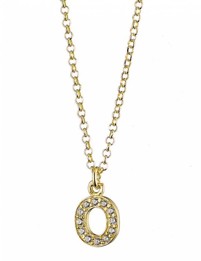 Oxzen ασημένιο κολιέ με μονόγραμμα επιχρυσωμένο με λευκά ζιργκόν