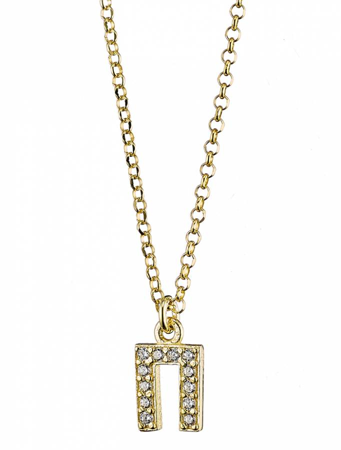Oxzen ασημένιο κολιέ με μονόγραμμα επιχρυσωμένο με λευκά ζιργκόν