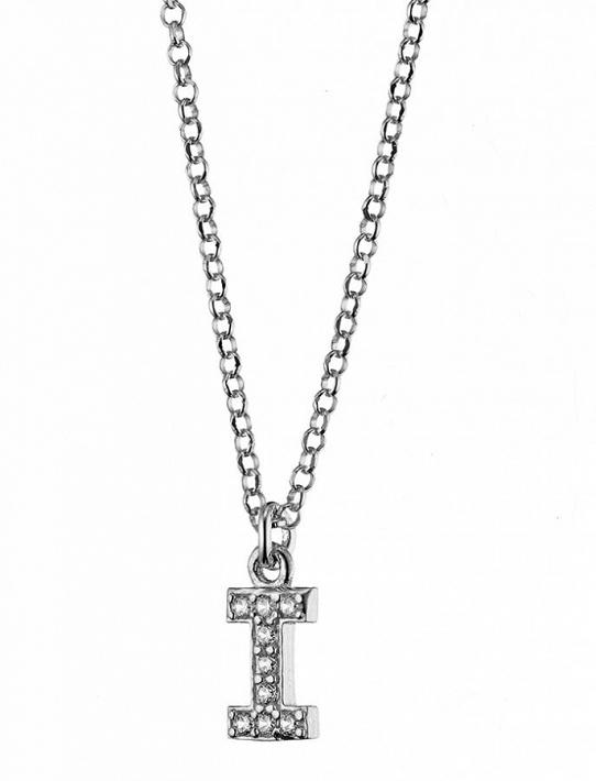 Oxzen ασημένιο κολιέ με μονόγραμμα με λευκά ζιργκόν