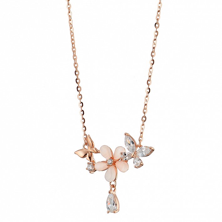 Oxzen ασημένιο κολιέ με οπάλιο και λευκά ζιργκόν
