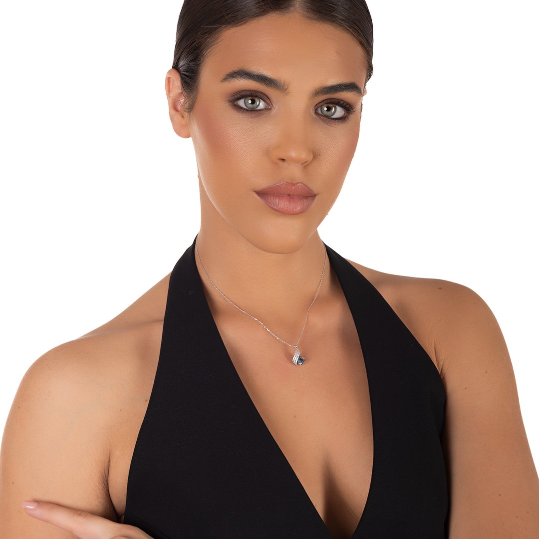 Oxzen ασημένιο κολιέ με πέτρα ζιργκόν