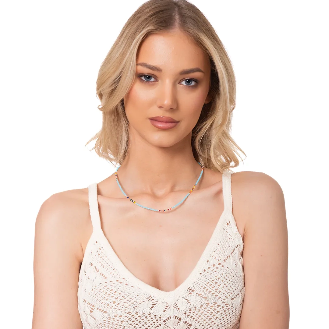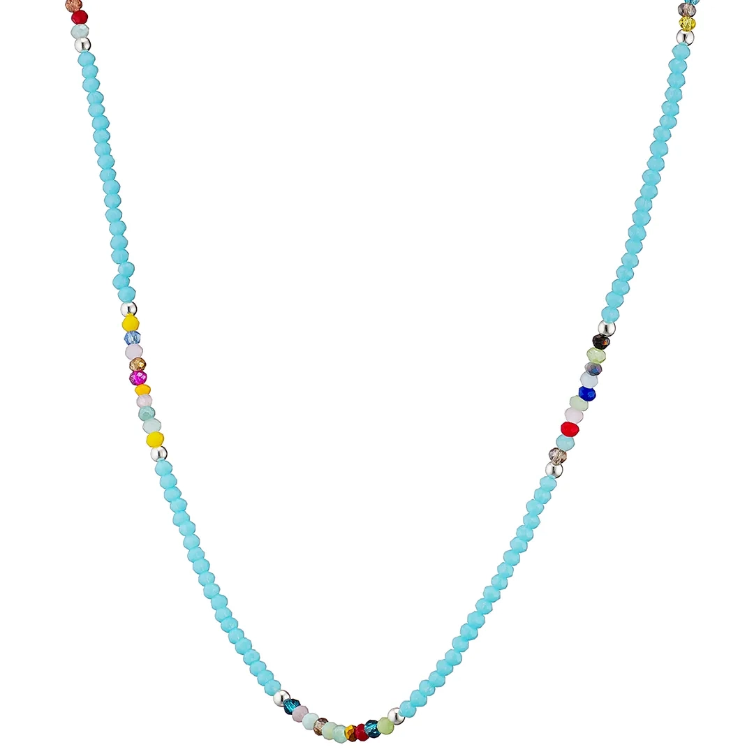 Oxzen ασημένιο κολιέ με τυρκουάζ και πολύχρωμες πέτρες