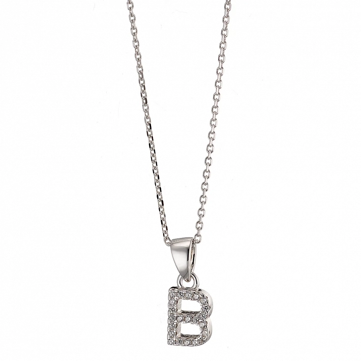 Oxzen ασημένιο κολιέ μονόγραμμα B με λευκά ζιργκόν