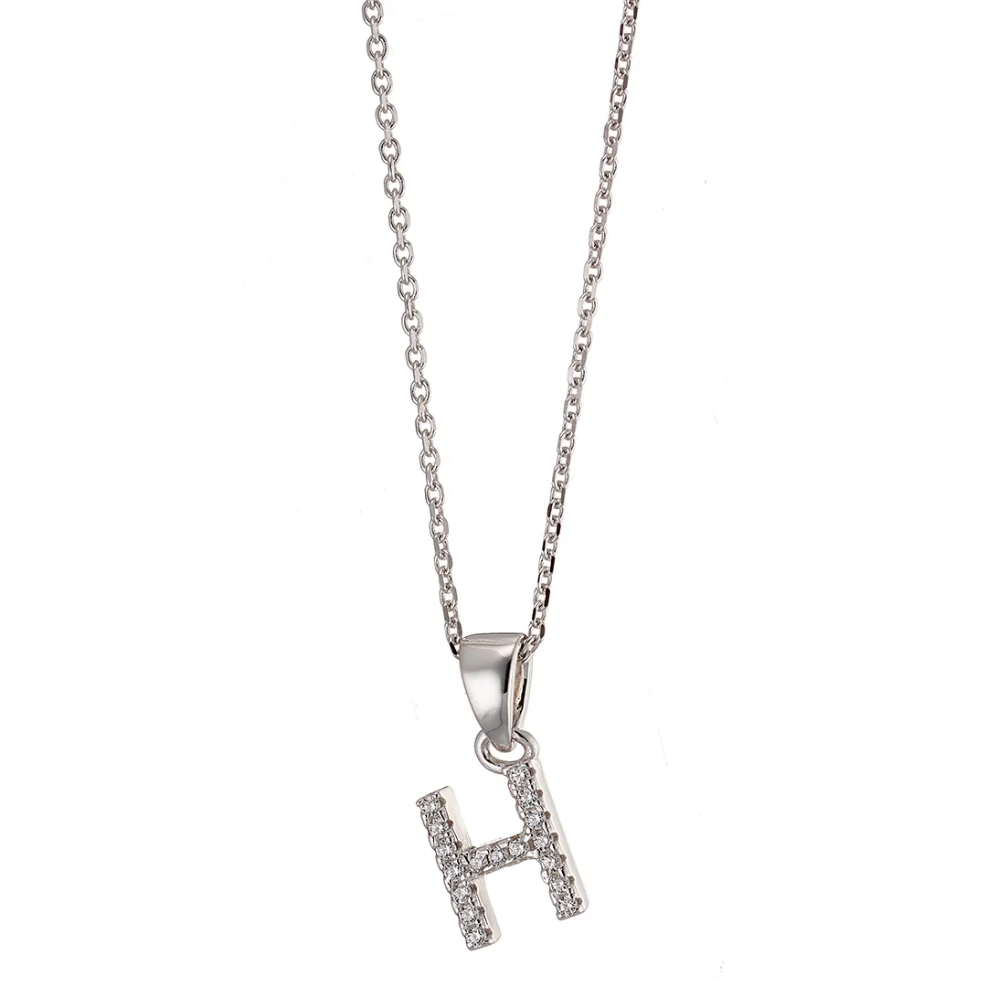 Oxzen ασημένιο κολιέ μονόγραμμα H, με λευκά ζιργκόν