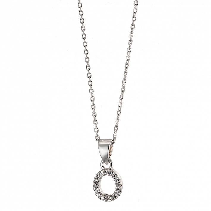 Oxzen ασημένιο κολιέ μονόγραμμα O με λευκά ζιργκόν
