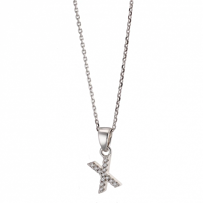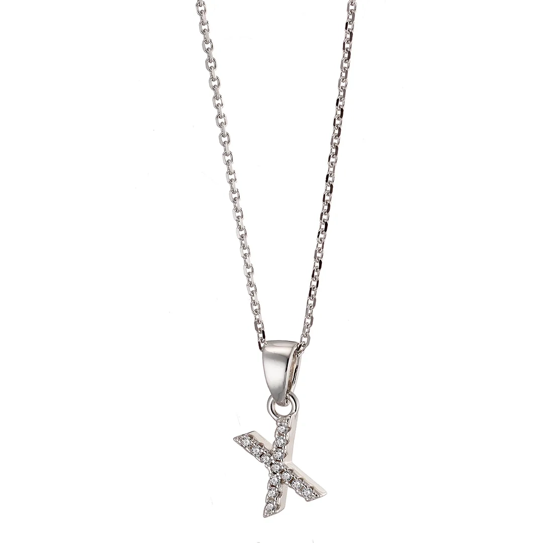 Oxzen ασημένιο κολιέ μονόγραμμα X με λευκά ζιργκόν