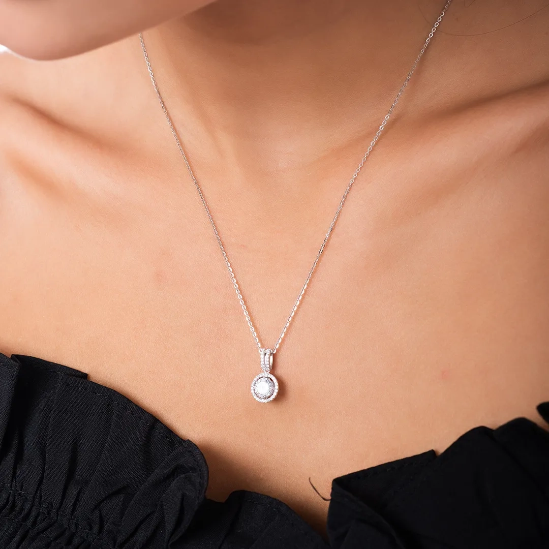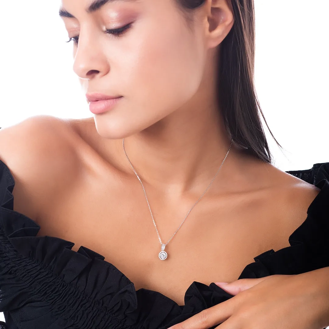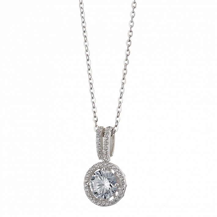 Oxzen ασημένιο κολιέ μονόπετρο με λευκά ζιργκόν
