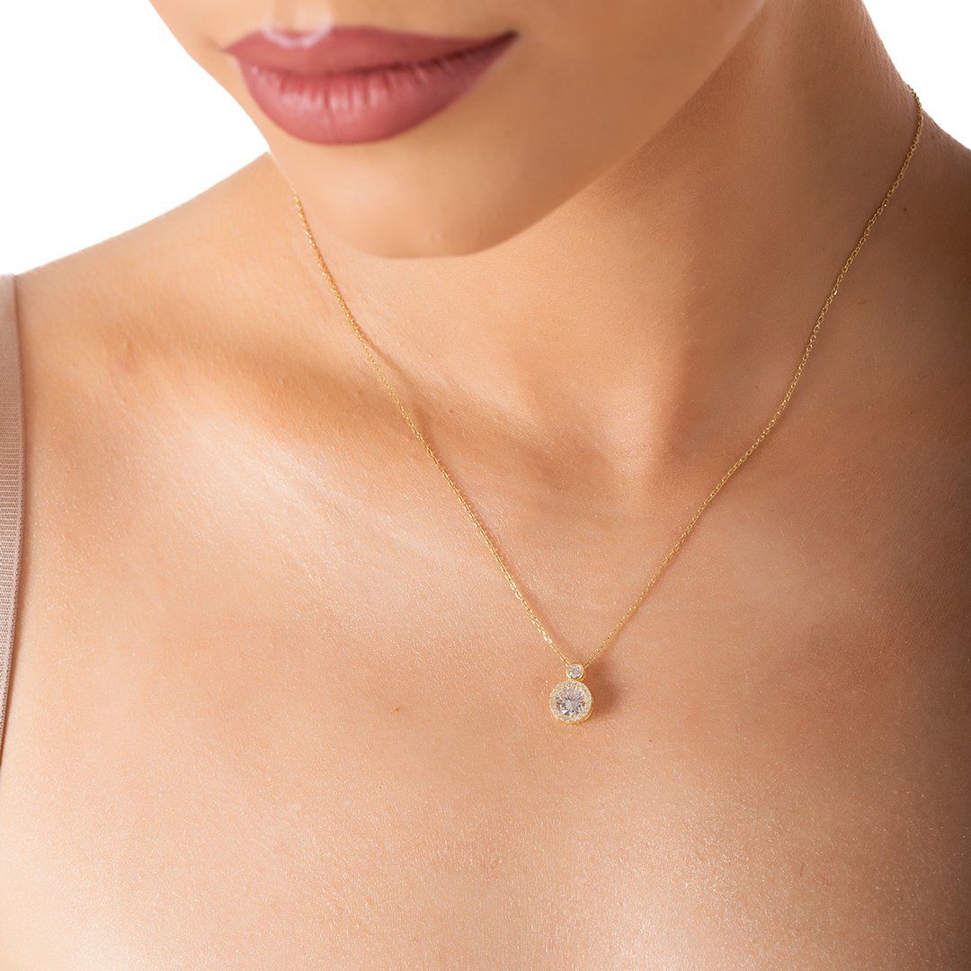 Oxzen ασημένιο κολιέ, μονόπετρο με ζιργκόν