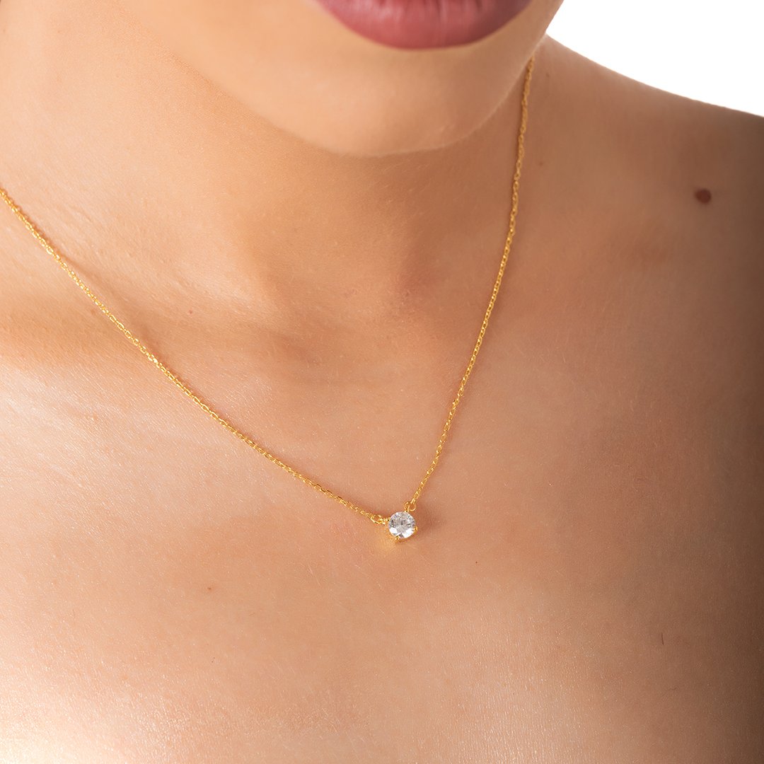 Oxzen ασημένιο κολιέ, μονόπετρο ζιργκόν