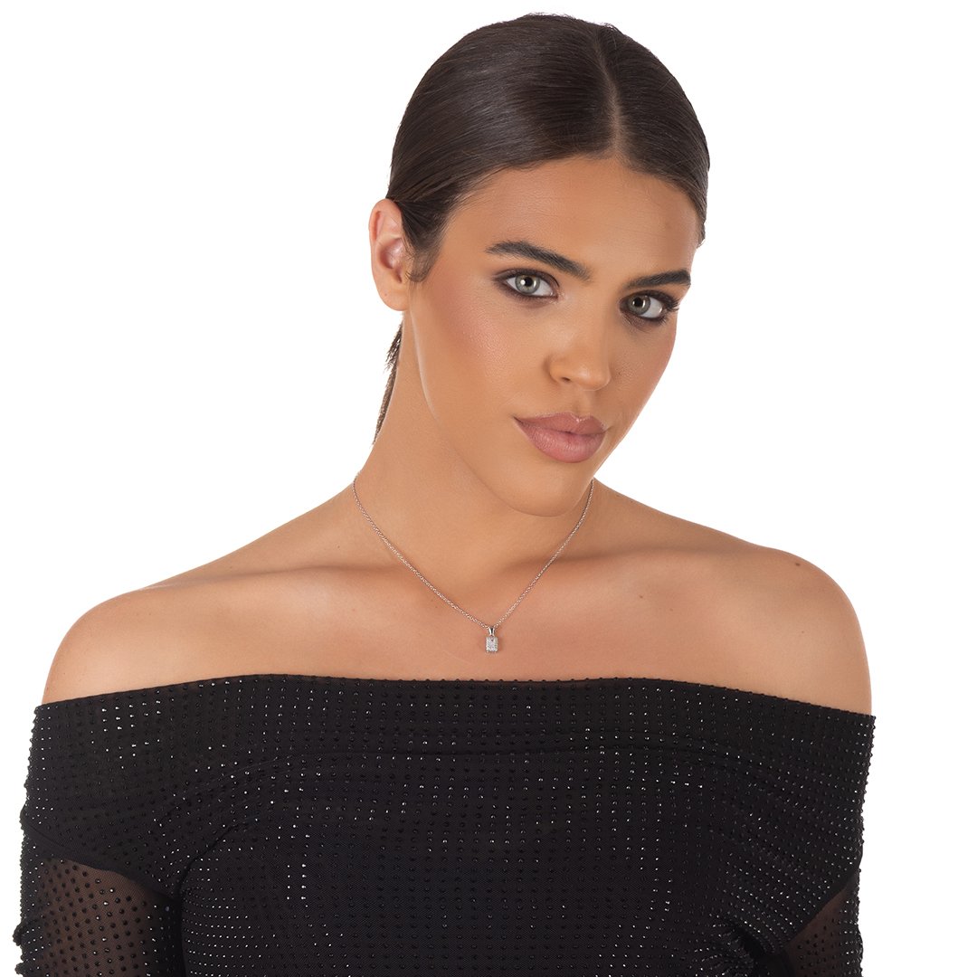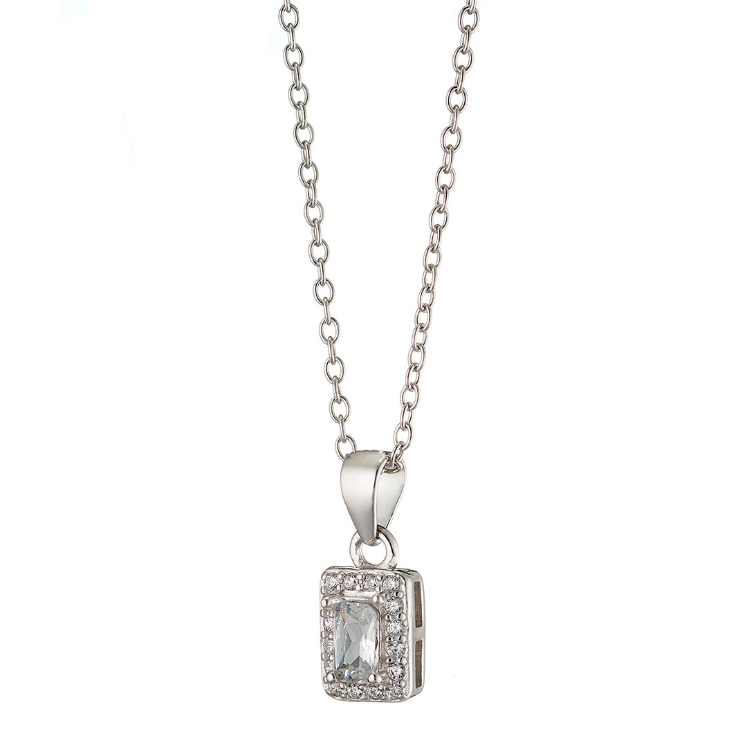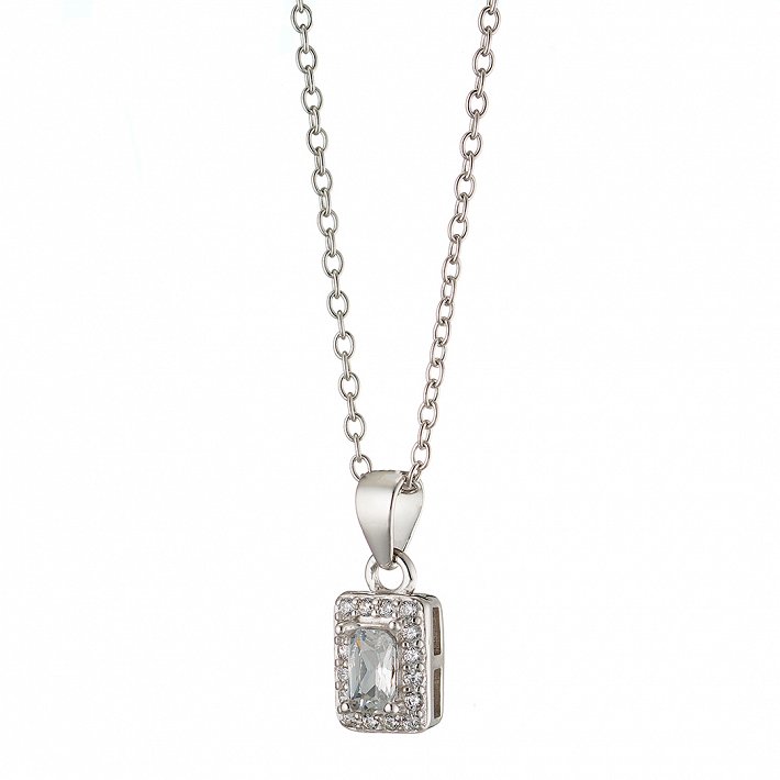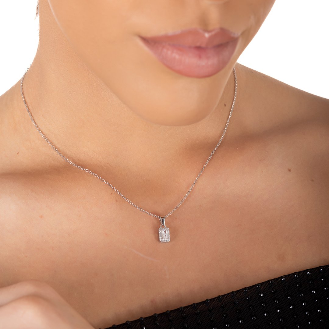 Oxzen ασημένιο κολιέ ορθογώνιο μονόπετρο με ζιργκόν
