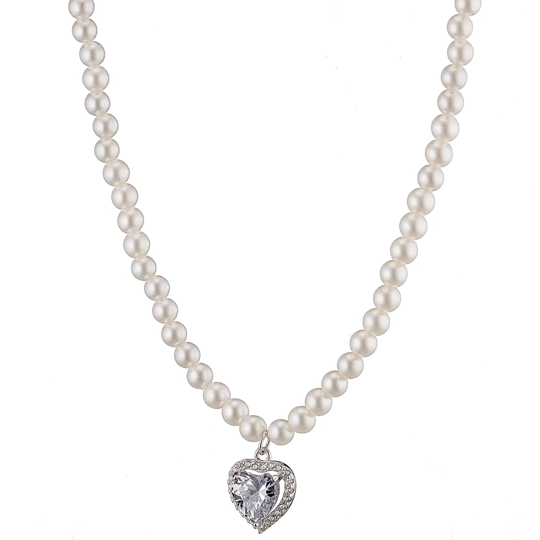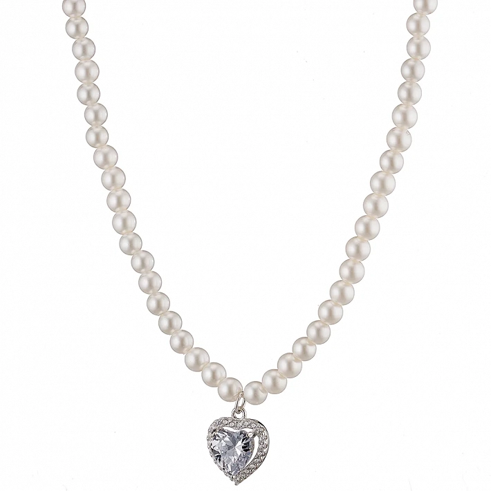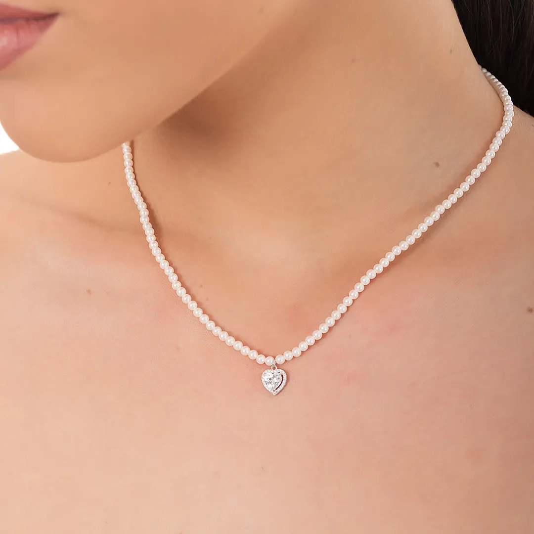 Oxzen ασημένιο κολιέ πέρλα 3mm με τελείωμα καρδιά με ζιργκόν