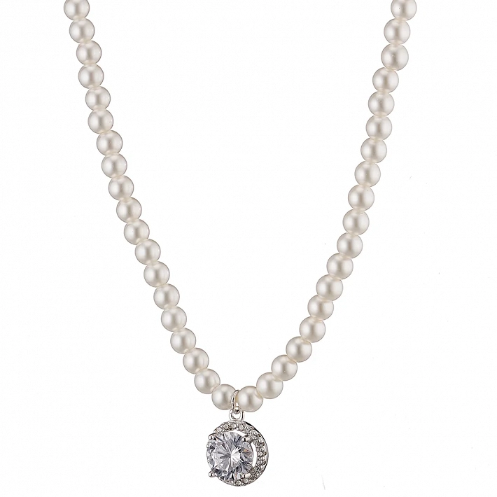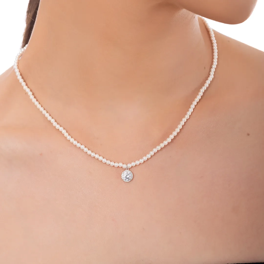 Oxzen ασημένιο κολιέ πέρλα 3mm με τελείωμα στρογγυλό ζιργκόν