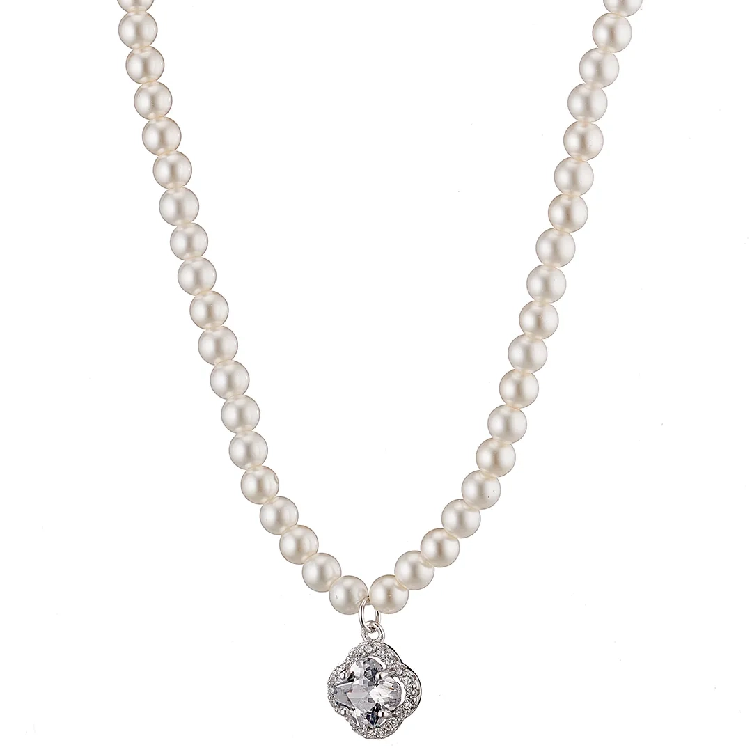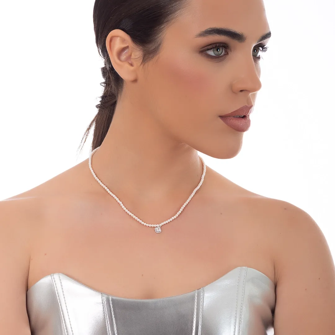 Oxzen ασημένιο κολιέ πέρλα 3mm με τελείωμα τετράγωνο ζιργκόν