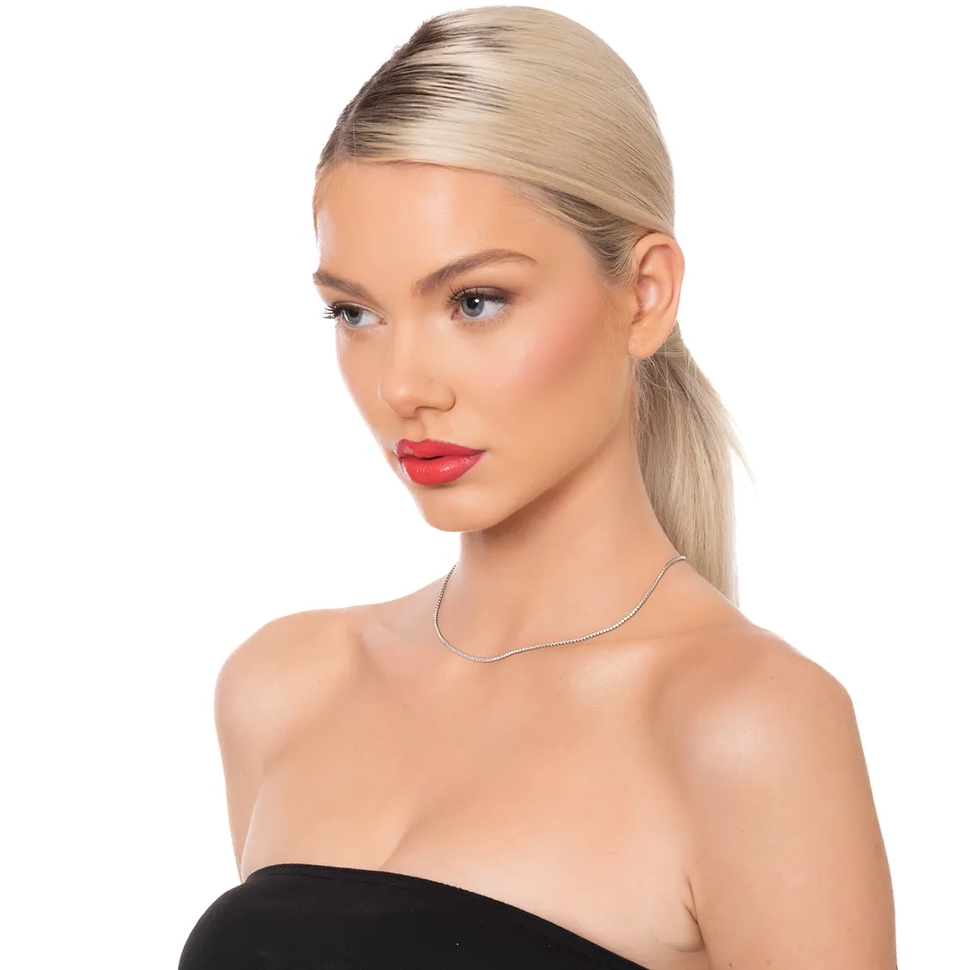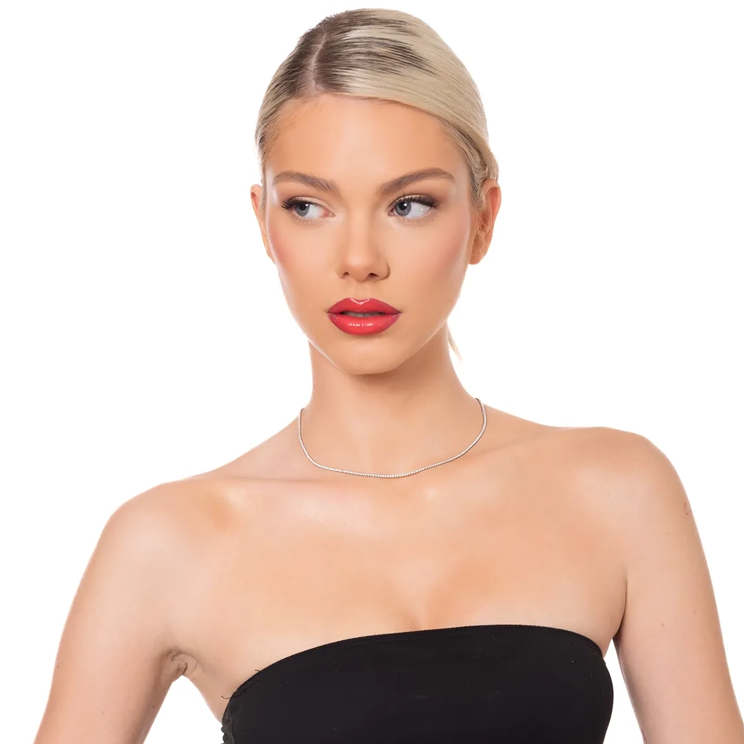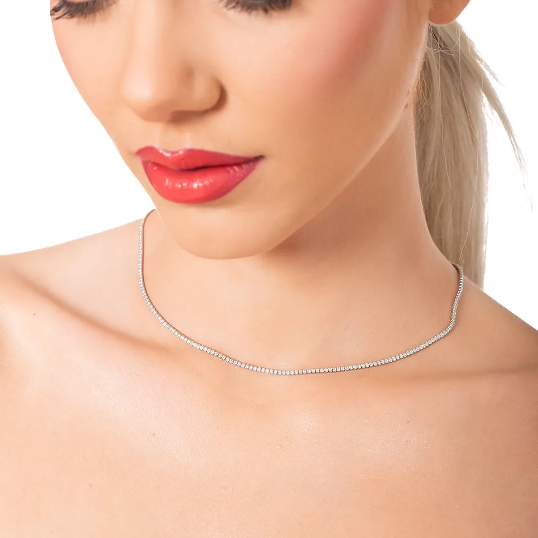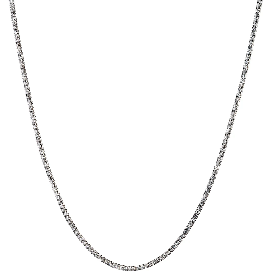 Oxzen ασημένιο κολιέ ριβιέρα με λευκά ζιργκόν 1.5 mm