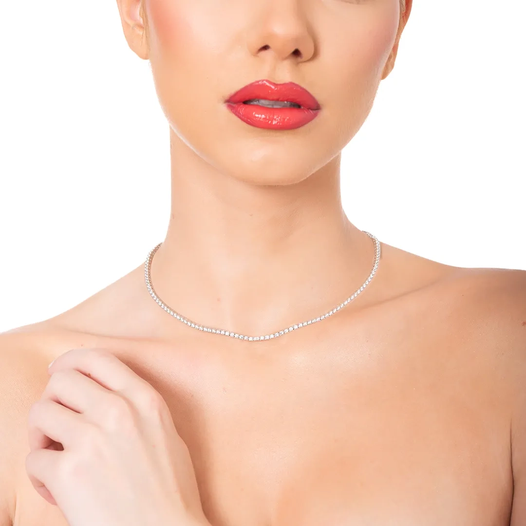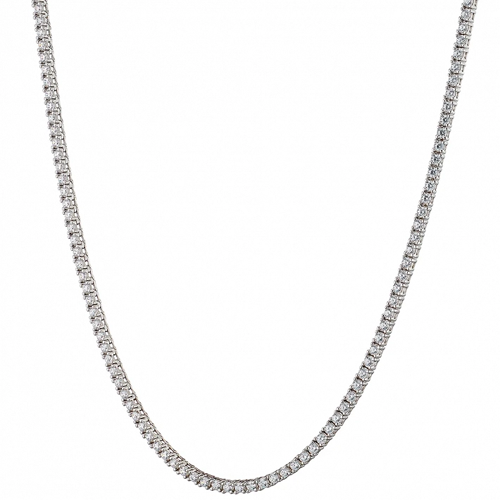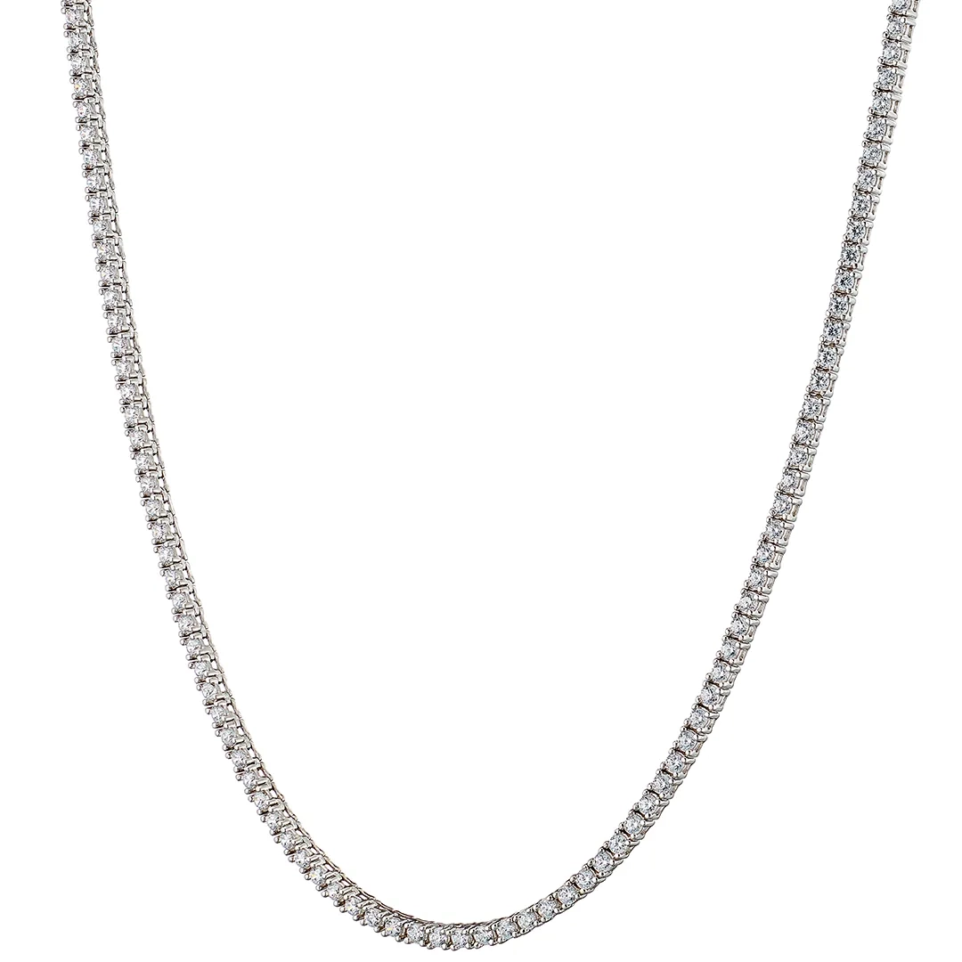 Oxzen ασημένιο κολιέ ριβιέρα με λευκά ζιργκόν 2 mm