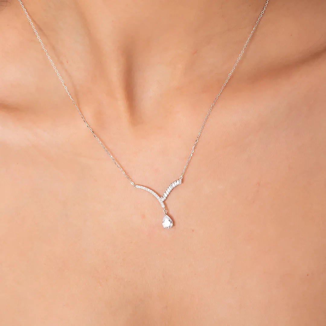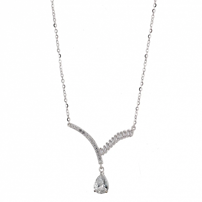 Oxzen ασημένιο κολιέ σε σχήμα V
