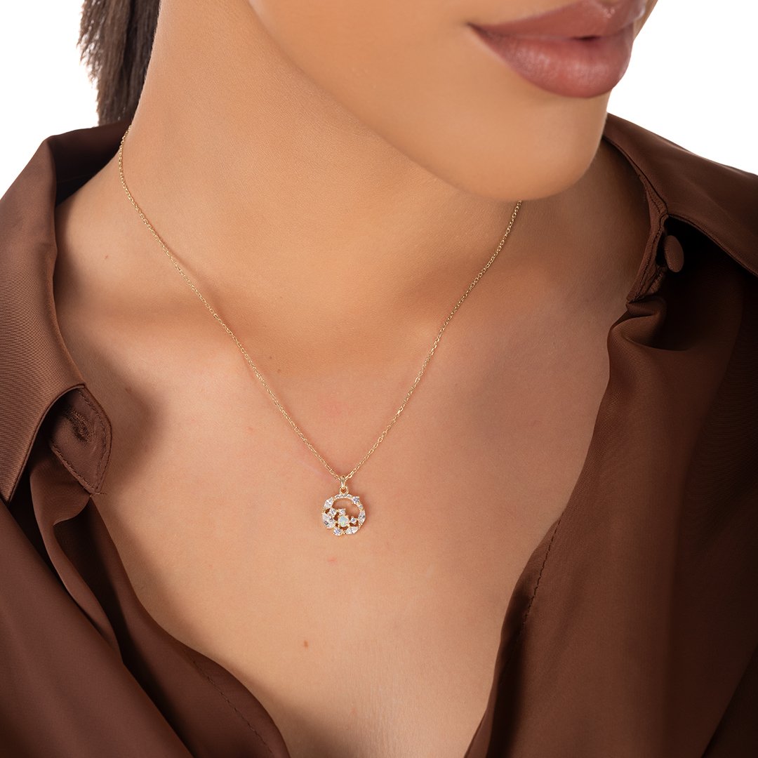 Oxzen κολιέ ασημένιο στεφανάκι με πέτρες