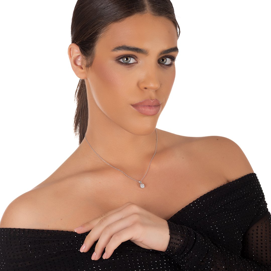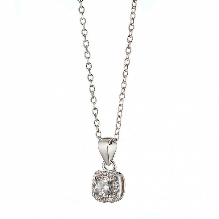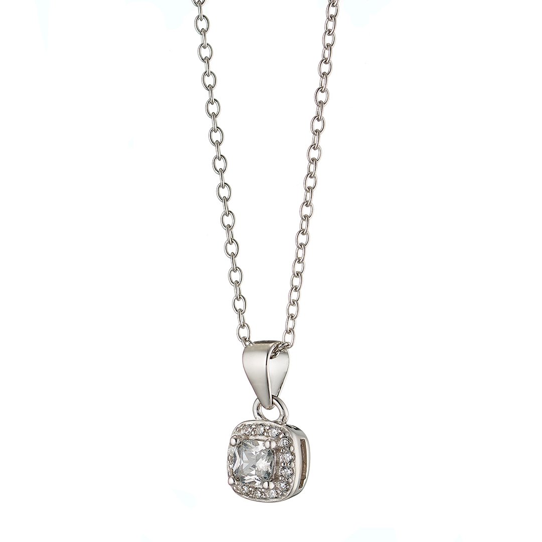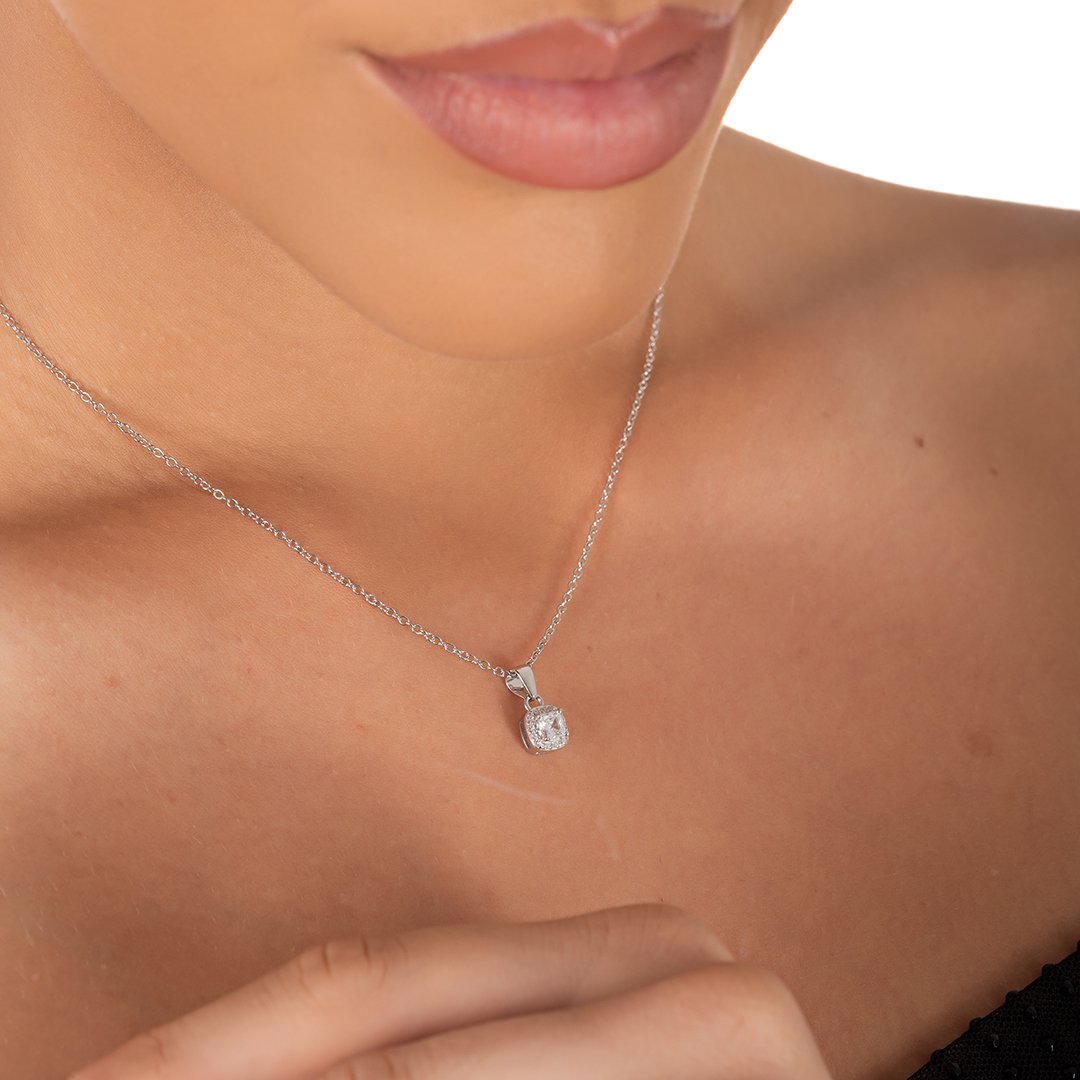 Oxzen ασημένιο κολιέ τετράγωνο μονόπετρο με ζιργκόν
