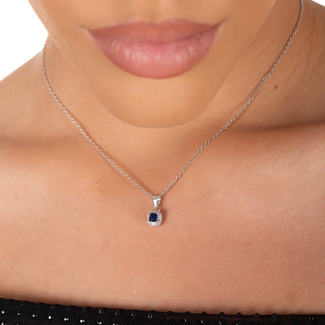 Oxzen ασημένιο κολιέ τετράγωνο μονόπετρο με ζιργκόν