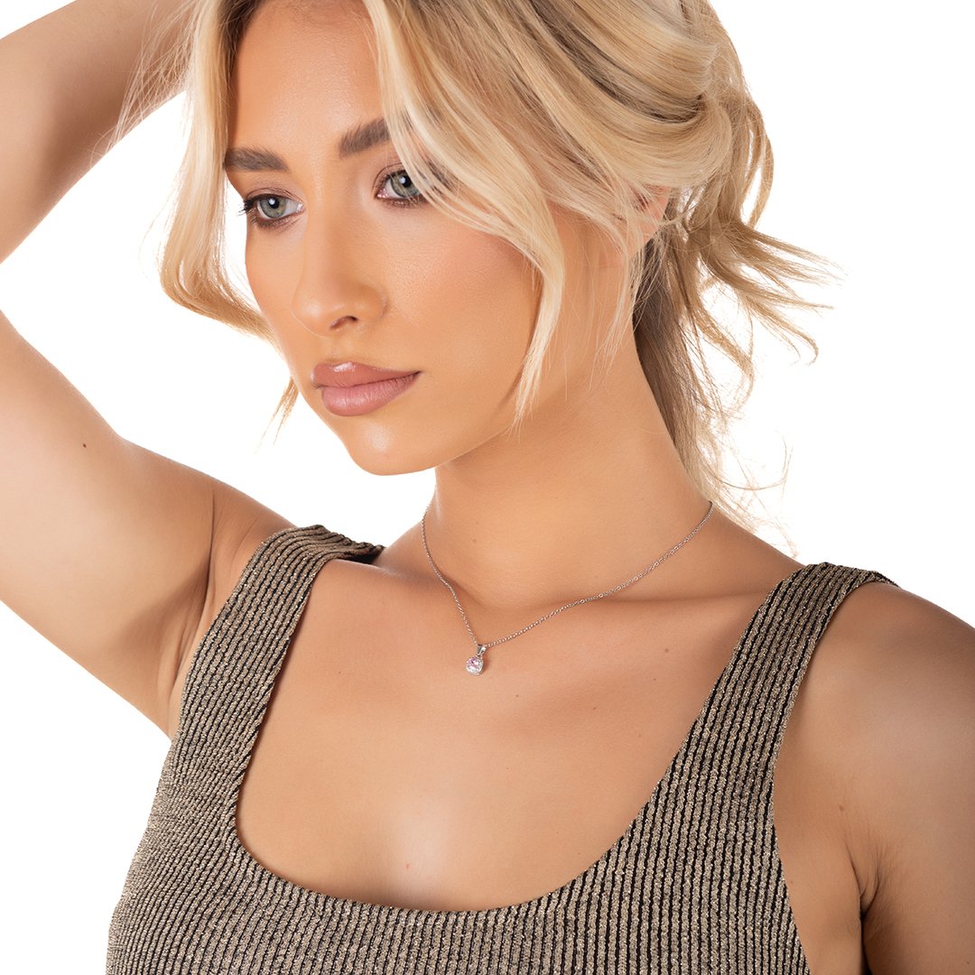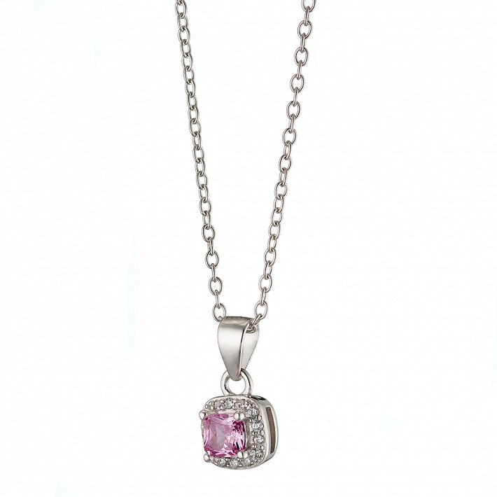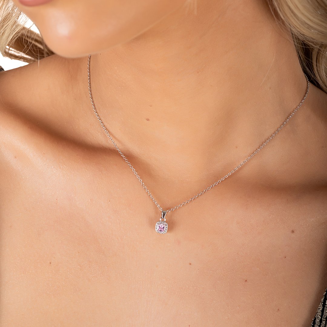 Oxzen ασημένιο κολιέ τετράγωνο μονόπετρο με ζιργκόν