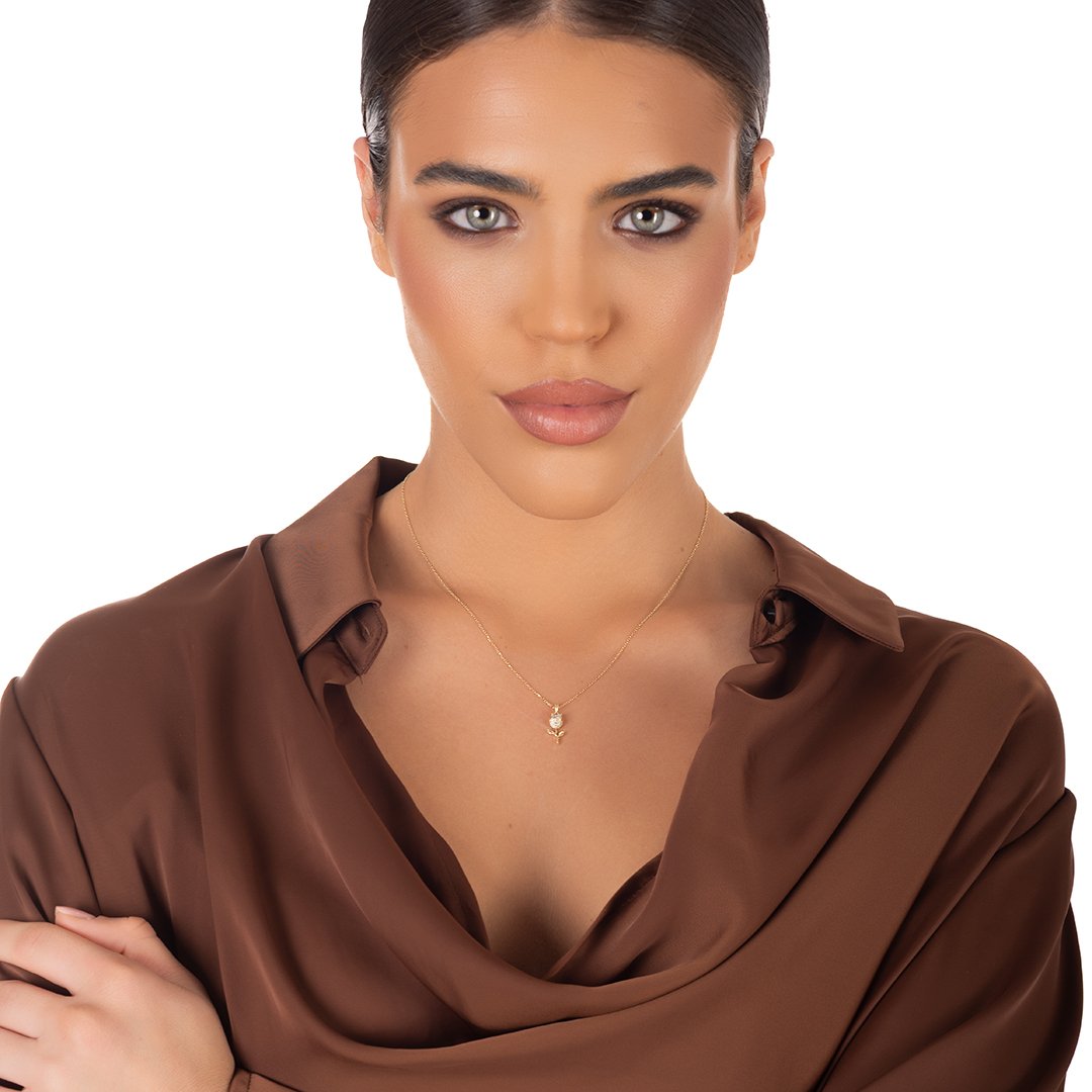 Oxzen ασημένιο κολιέ τριαντάφυλλο με ζιργκόν