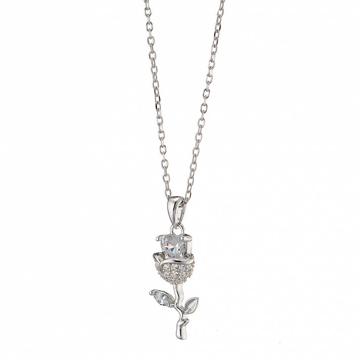 Oxzen κολιέ ασημένιο τριαντάφυλλο με λευκά ζιργκόν