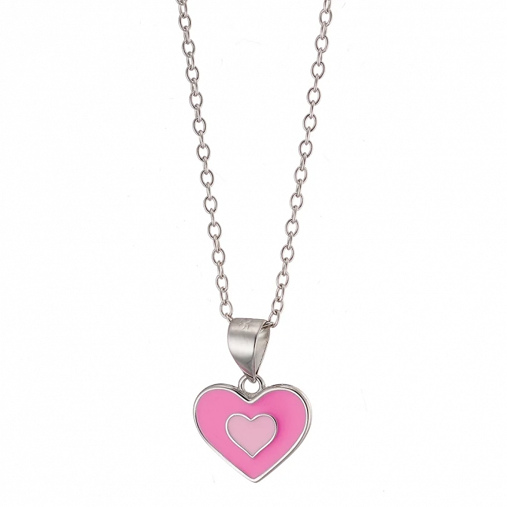 Oxzen ασημένιο παιδικό κολιέ ροζ καρδούλα