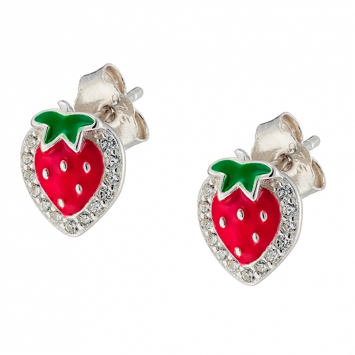 Παιδικά σκουλαρίκια φραουλίτσες με μικρές πέτρες ζιργκόν
