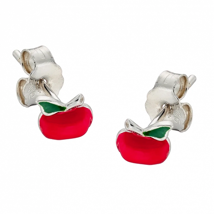 Oxzen ασημένιο παιδικό σκουλαρίκι επιπλατινωμένο με κόκκινο μήλο