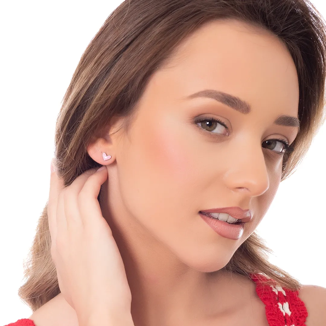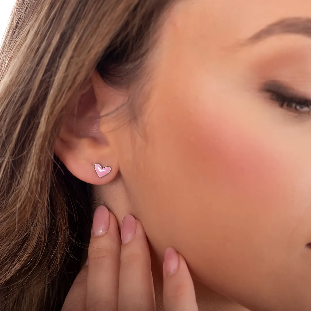 Oxzen ασημένιο παιδικό σκουλαρίκι καρδιά με σμάλτο