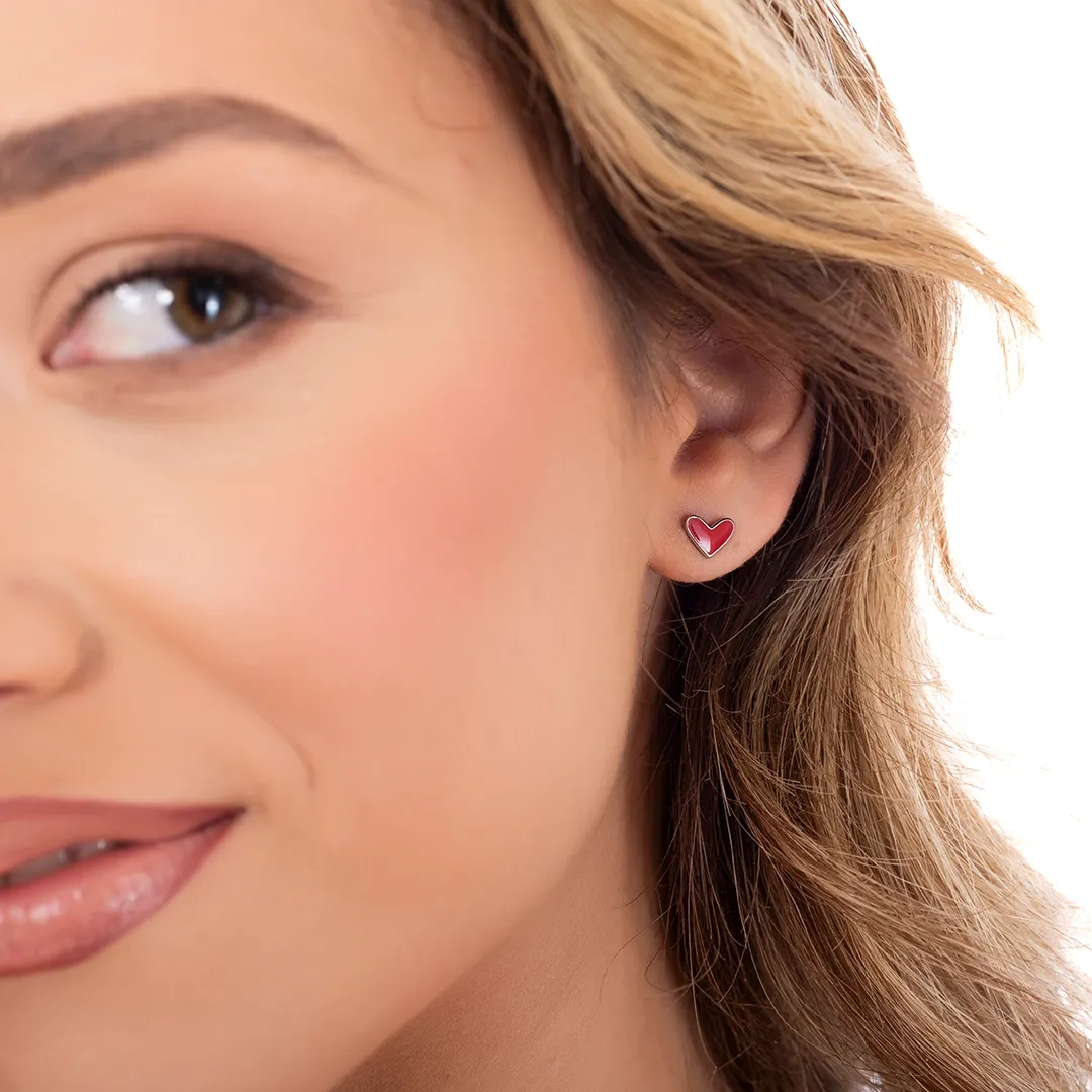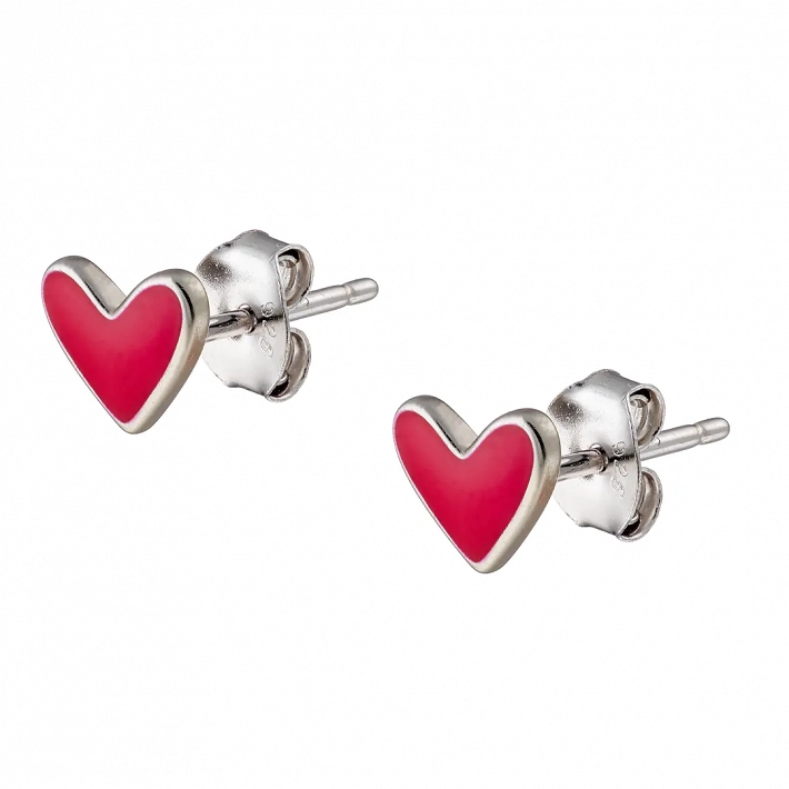 Oxzen ασημένιο παιδικό σκουλαρίκι καρδιά με σμάλτο