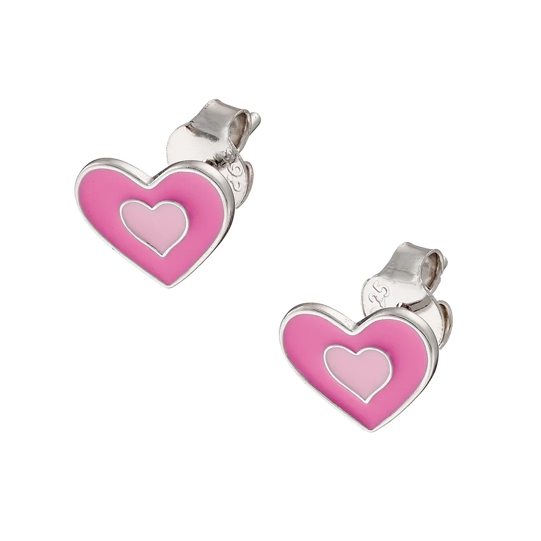 Oxzen ασημένιο παιδικό σκουλαρίκι καρφωτ, καρδούλα ροζ