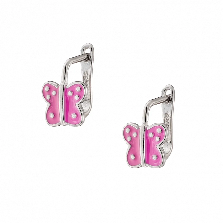 Oxzen ασημένιο παιδικό σκουλαρίκι κρικάκι με ροζ πεταλούδα